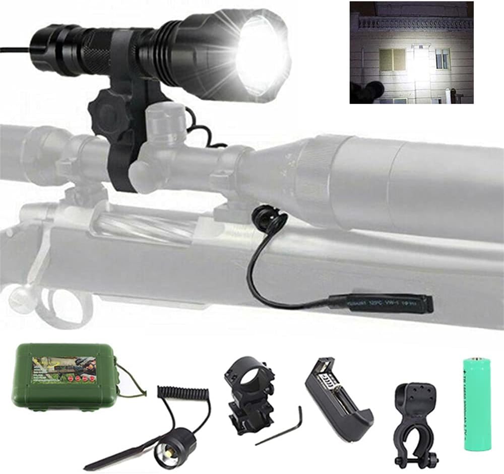 通用 White Hunting Light with Pressure Switch & Scope Mount, 4000Lm Zoomable Green and Red Tactical Flashlight for Night Hunt