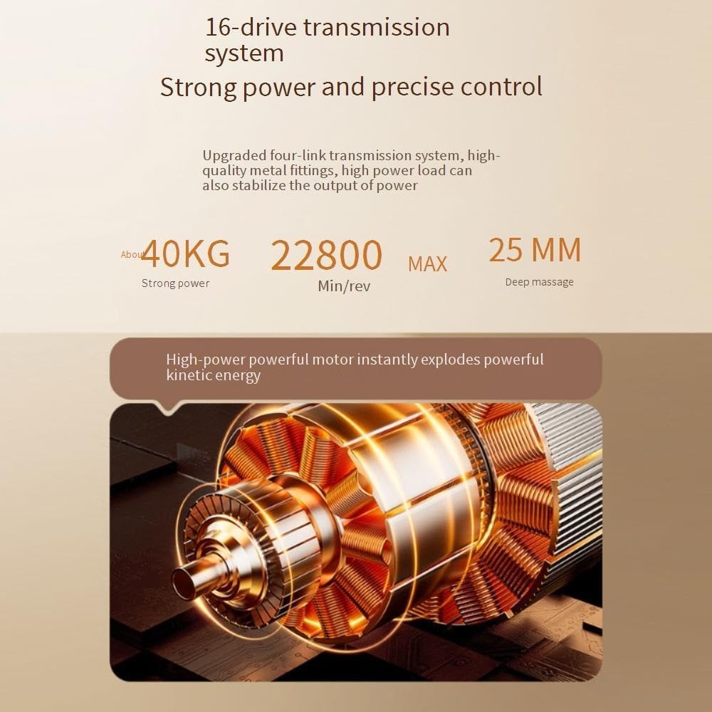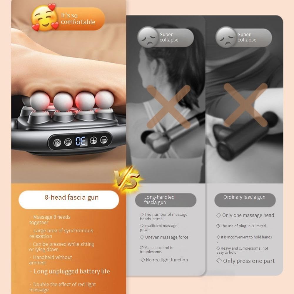 The 16-Drive 8-Head Massage Gun Set is designed to provide deep tissue relief for various muscle groups, including the back, shoulders, and legs. With 30 intensity levels and 3 smart modes, it caters to individual needs for muscle relaxation and pain relief. The lightweight and compact design makes it portable, allowing you to enjoy a massage at home, in the office, or on the go.