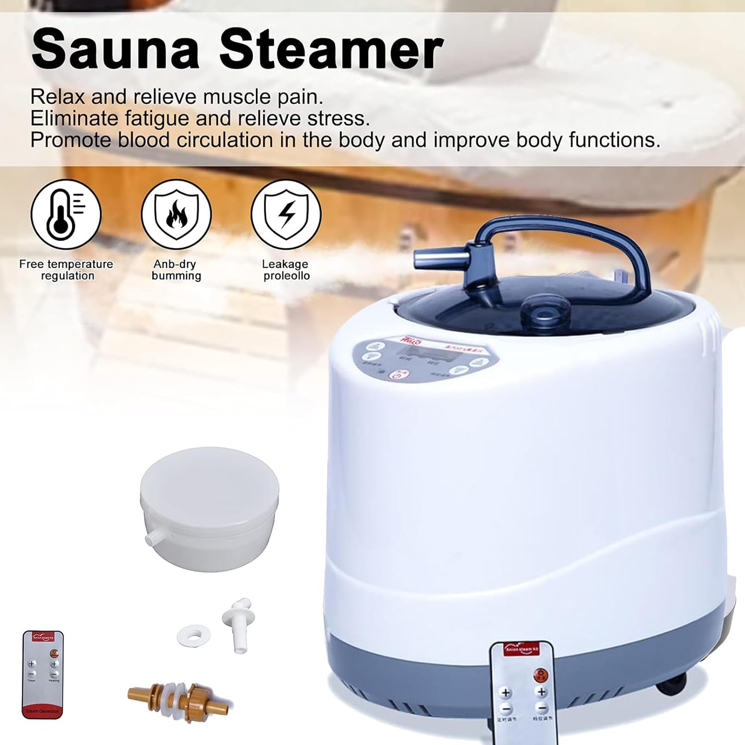 The 4L Sauna Steamer Pot is designed to bring the benefits of a sauna into your home. With a powerful 2000W output, this portable steamer helps reduce stress and fatigue while providing body therapy. You can easily set the timer from 0 to 99 minutes, allowing for customized sessions. The unit is made from durable ABS plastic with a stainless steel interior, ensuring longevity and safety. It includes a remote control for convenience, making it easy to operate from a distance.