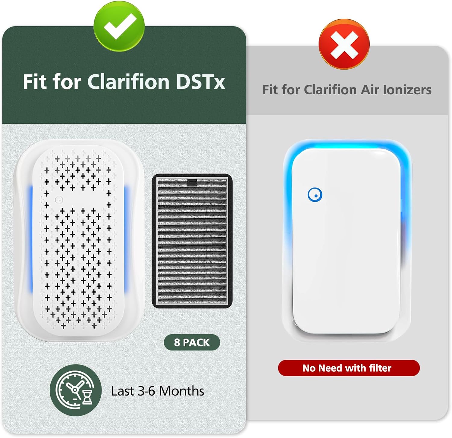 8 Pack DSTx HEPA + Carbon Filters Replacement Compatible with Clarifion DSTx Mini Personal Portable Air Purifiers for Home, Bedroom and Pets, Works for Dust, Smoke,Odors and Airborne Particles