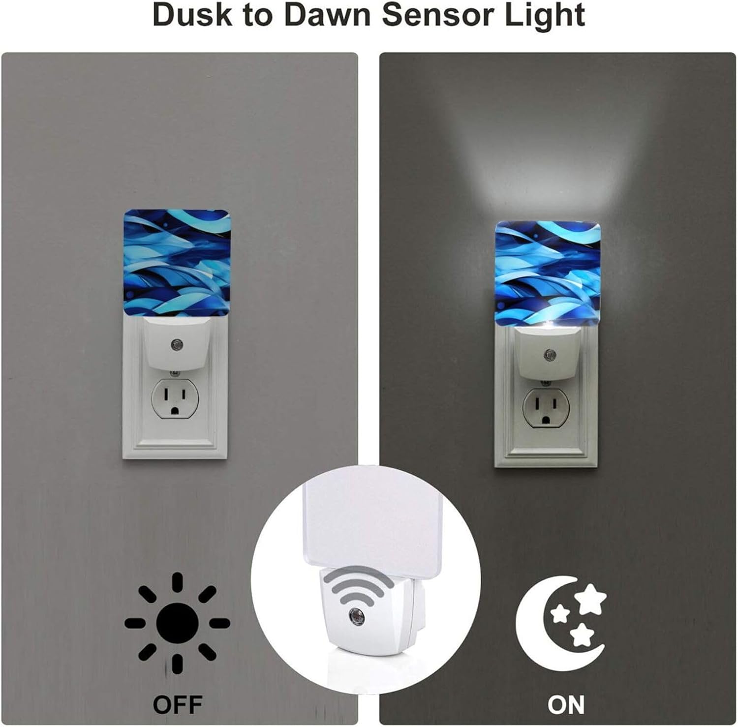 Enhance your home's comfort and safety with the Abstract Blue Print Night Light. This intelligent LED plug-in night light is perfect for bedrooms, hallways, and bathrooms. It features advanced photoresistor sensor technology, providing a soft glow in darkness and turning off at dawn. With only 0.5w of power consumption and a lifespan of up to 100,000 hours, it is energy-efficient and environmentally friendly.