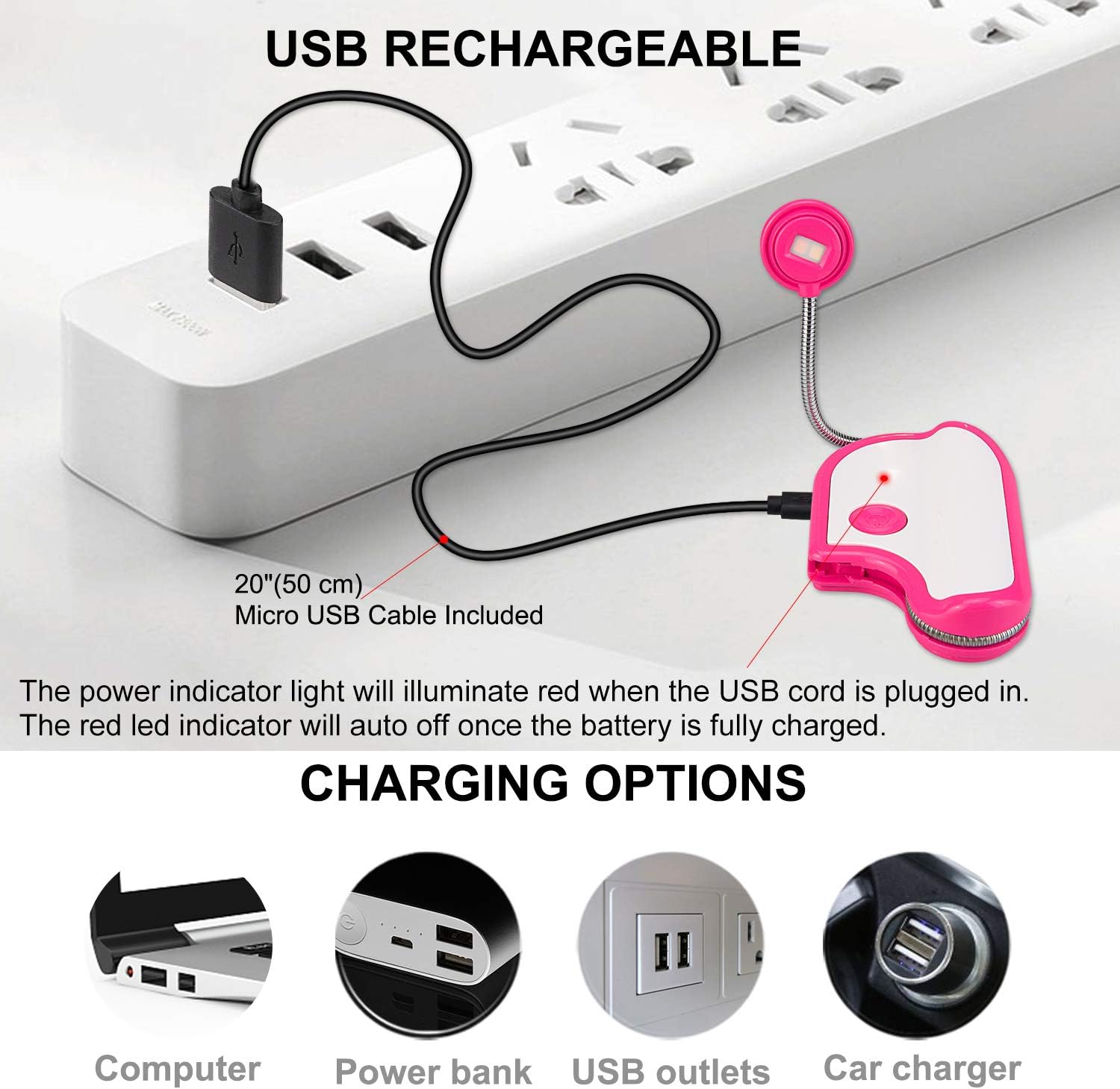 Amber Reading Light Rechargeable, Book Light Kids for Reading in Bed, Clip On Reading Book Light, 2 Lighting Modes, Blue Light Blocking for Eye-Care, Small Bookmark Light for Bookworm-Magenta