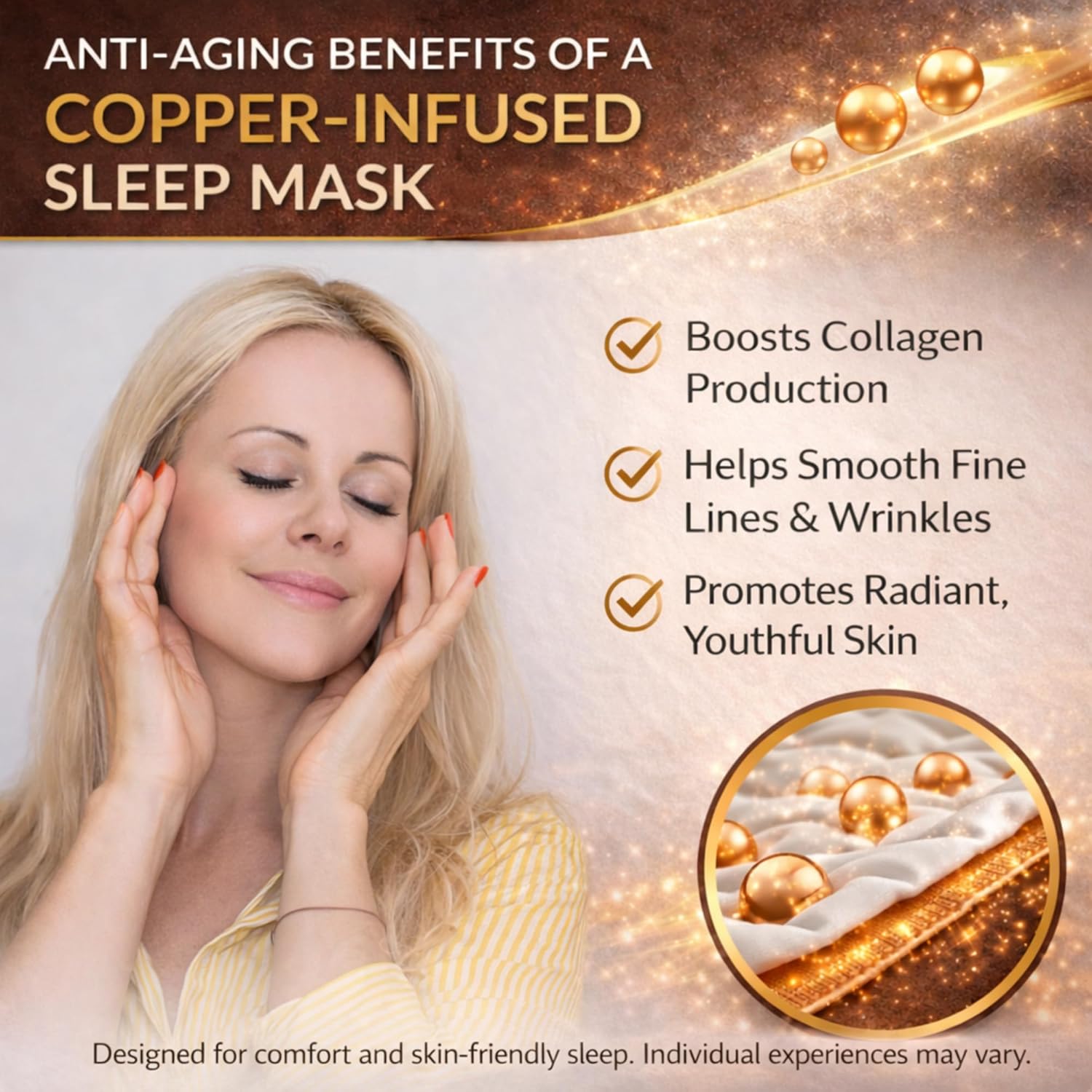 Anti-Wrinkle Sleep Mask for Women, Super Soft Mulberry Silk Eye Mask for Sleeping & Skin Care, Anti Aging Sleep Mask with Copper Technology