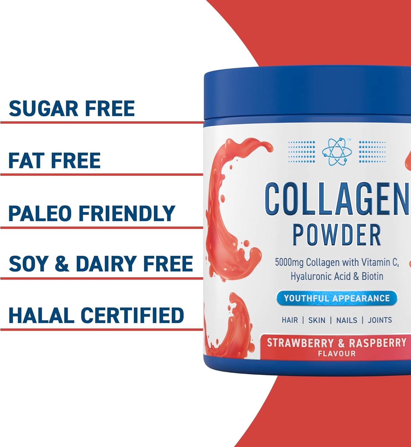 Applied Nutrition Collagen Powder – Strawberry & Raspberry Flavour – 5000mg Hydrolysed Bovine Flavoured Collagen Peptides with Vitamin C, Hyaluronic Acid & Biotin (165g – 30 Servings)