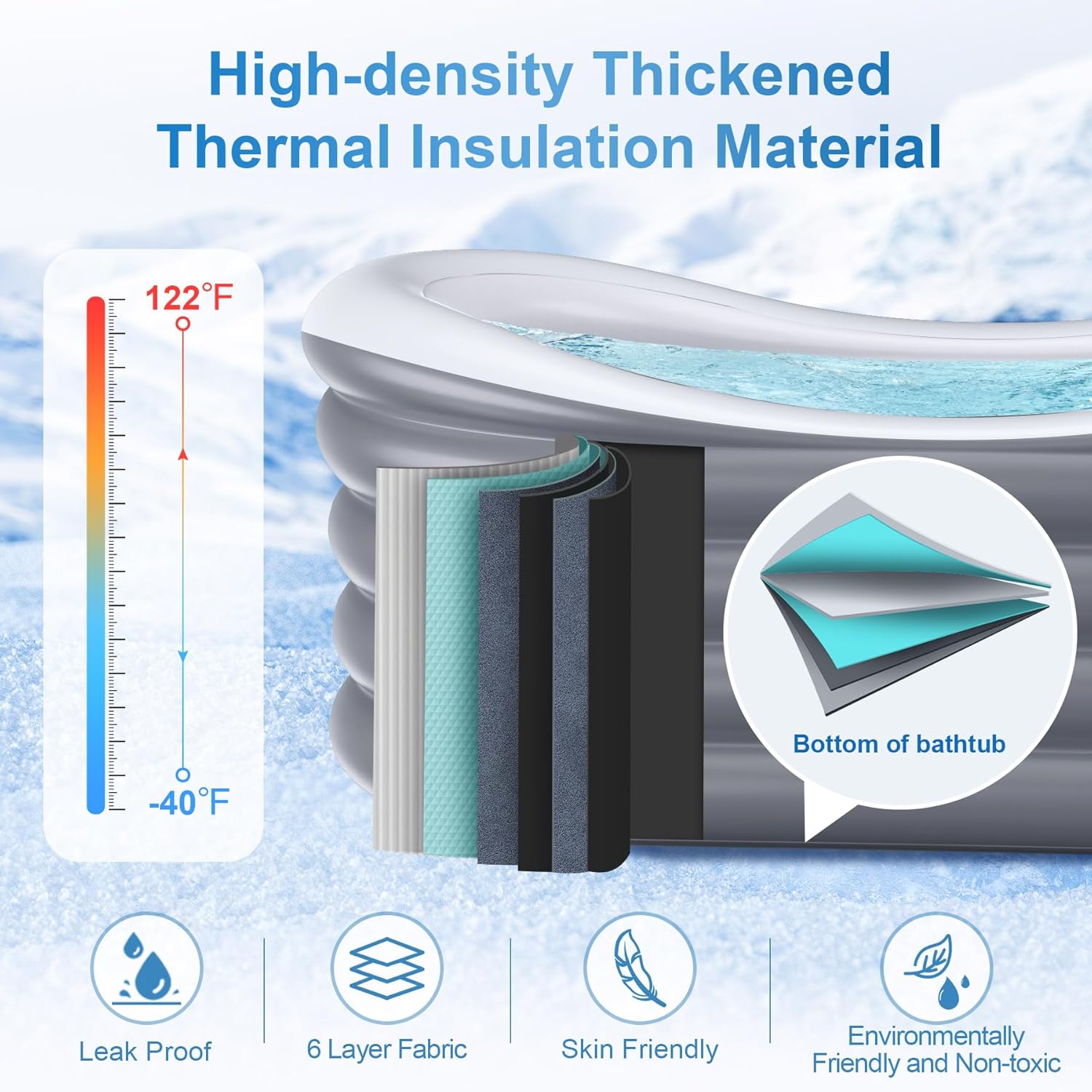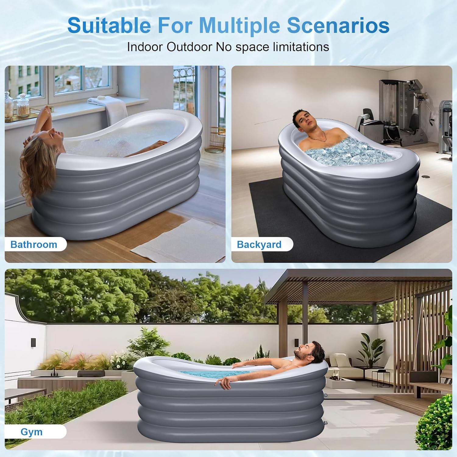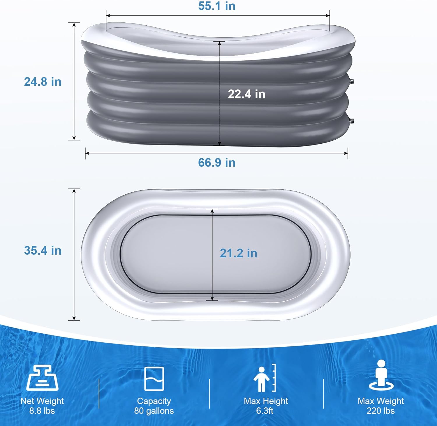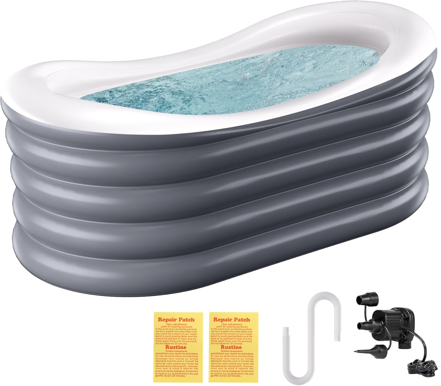 The BINYUAN Inflatable Bathtub is designed for adults seeking a portable and convenient bathing solution. Made from durable PVC, this bathtub is both collapsible and easy to store. It features a hot and ice bath design, allowing you to enjoy a relaxing soak or a refreshing cool down. With dimensions of 66.9" in length and a capacity of 110 gallons, it comfortably accommodates 1-2 people. The included electric air pump ensures quick inflation, while the drain hose simplifies water removal.