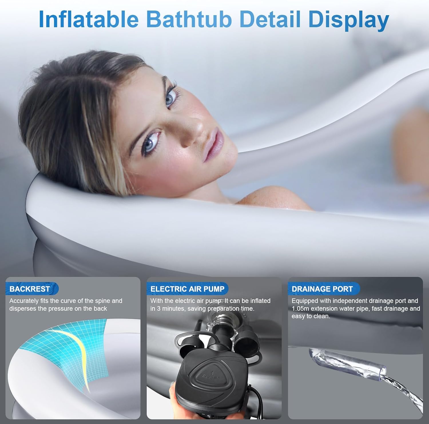 BINYUAN Inflatable Bathtub for Adults – Portable Collapsible Spa Tub with Electric Pump, Hot & Ice Bath Design, Foldable for 1-2 People, Durable PVC – Easy Inflate/Quick Drain