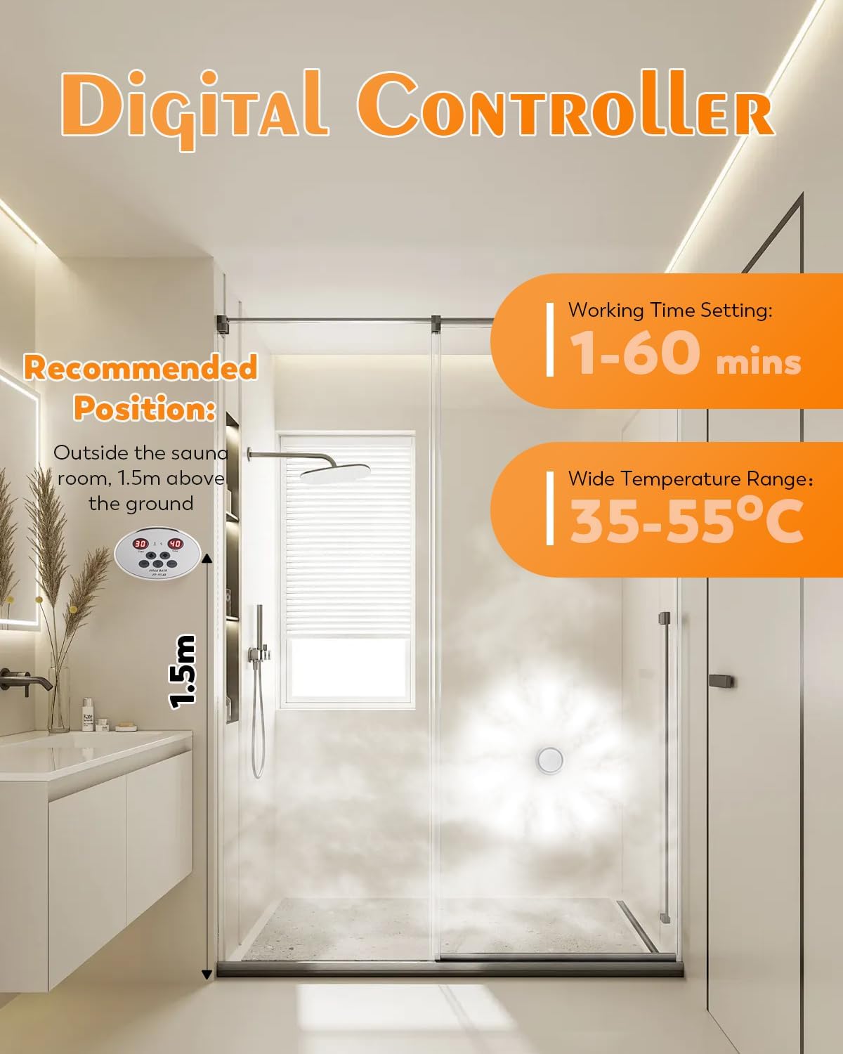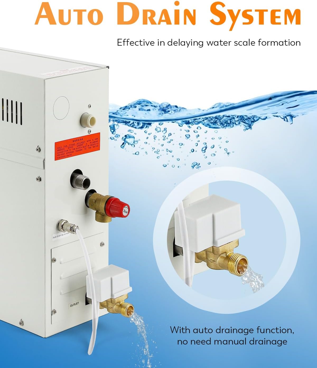 CGOLDENWALL 9KW Home Steam Sauna Generator 220V, with Self-Draining System, Digital Controller 35-55℃ Adjustable, Ideal for Sauna/Shower/Bath/SPA