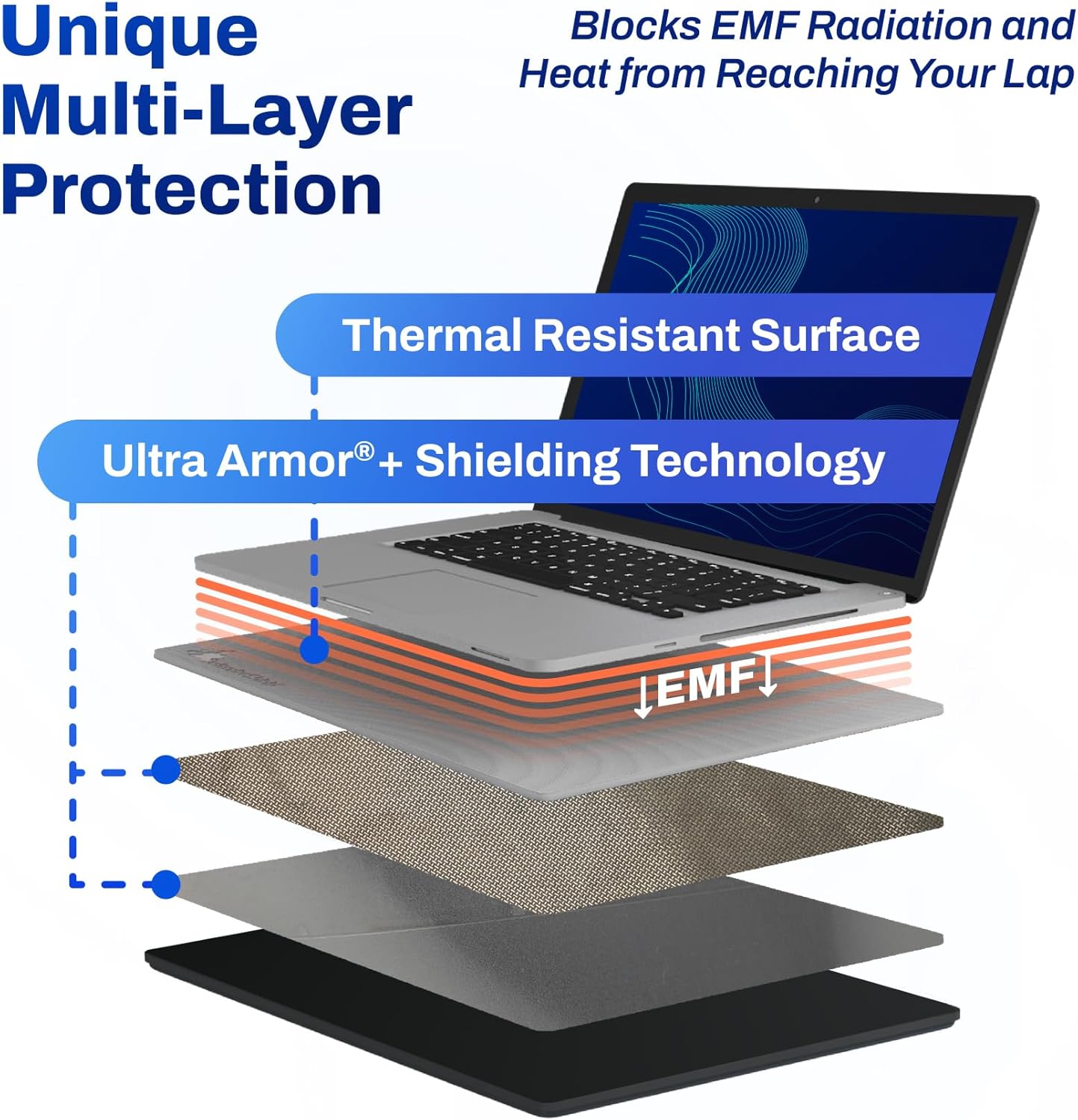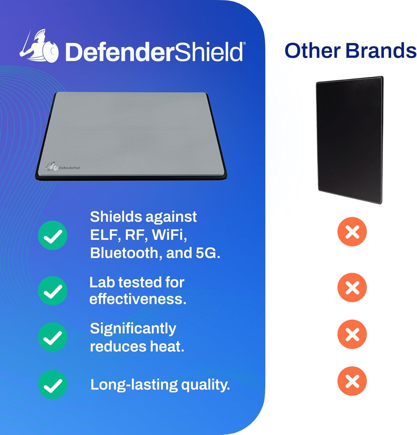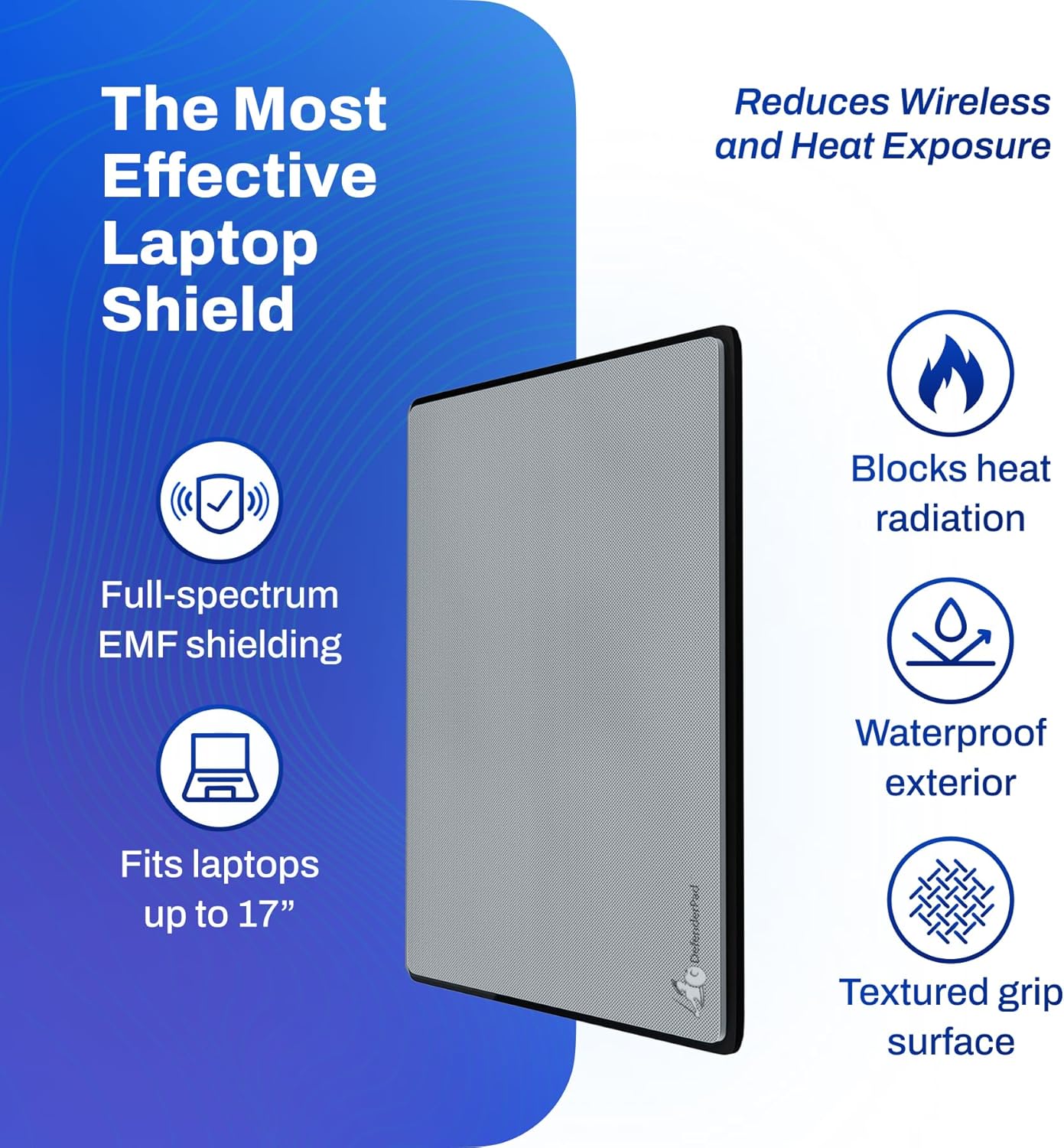 The DefenderPad Laptop EMF Radiation Protection & Heat Shield is designed to provide effective shielding against electromagnetic fields (EMF) and heat generated by laptops. With lab-tested Ultra Armor+ technology, it blocks all EMF signals and 5G radiation, ensuring safety without compromising connectivity. This pad enhances comfort during extended use by reducing heat transfer, making it ideal for work, gaming, or streaming.