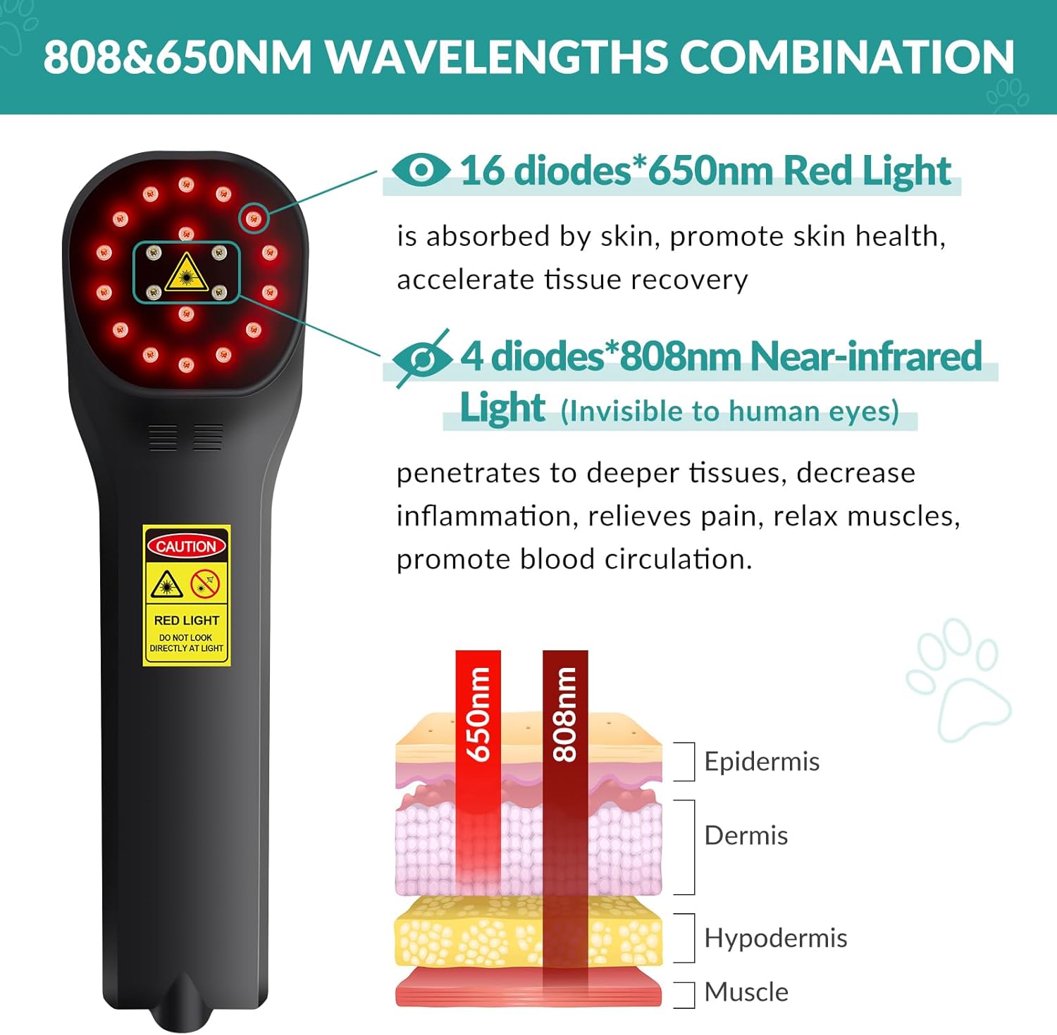 Dog Red Light Laser Therapy Device, 4 x 808nm + 16 x 650nm Cold Laser Therapy Devices for Pain Relief, Red Light Laser Therapy for Dog Arthritis,