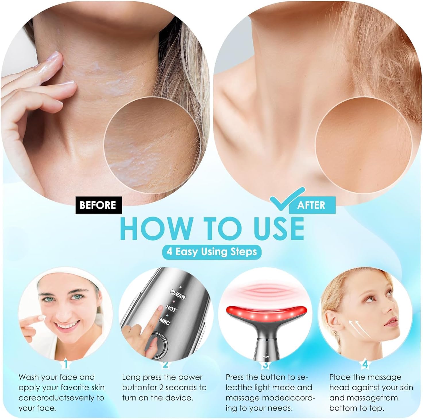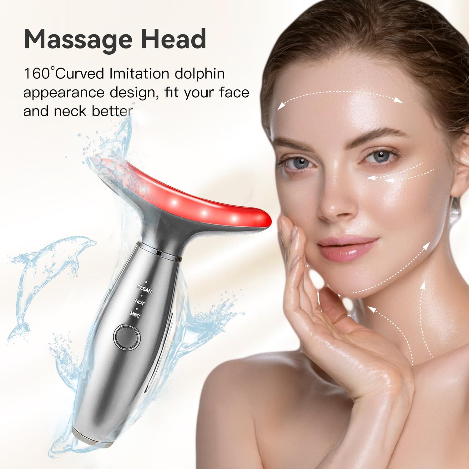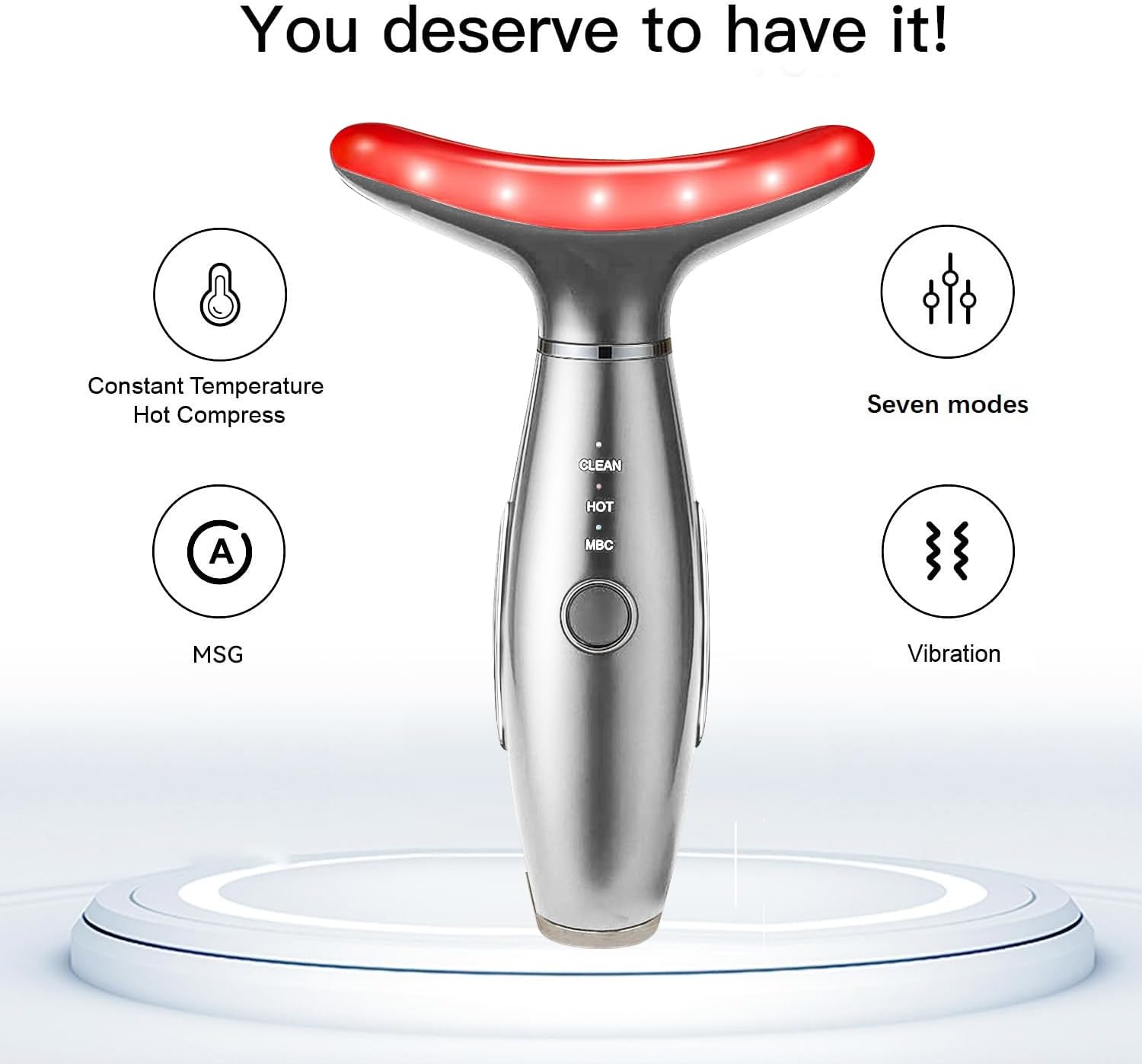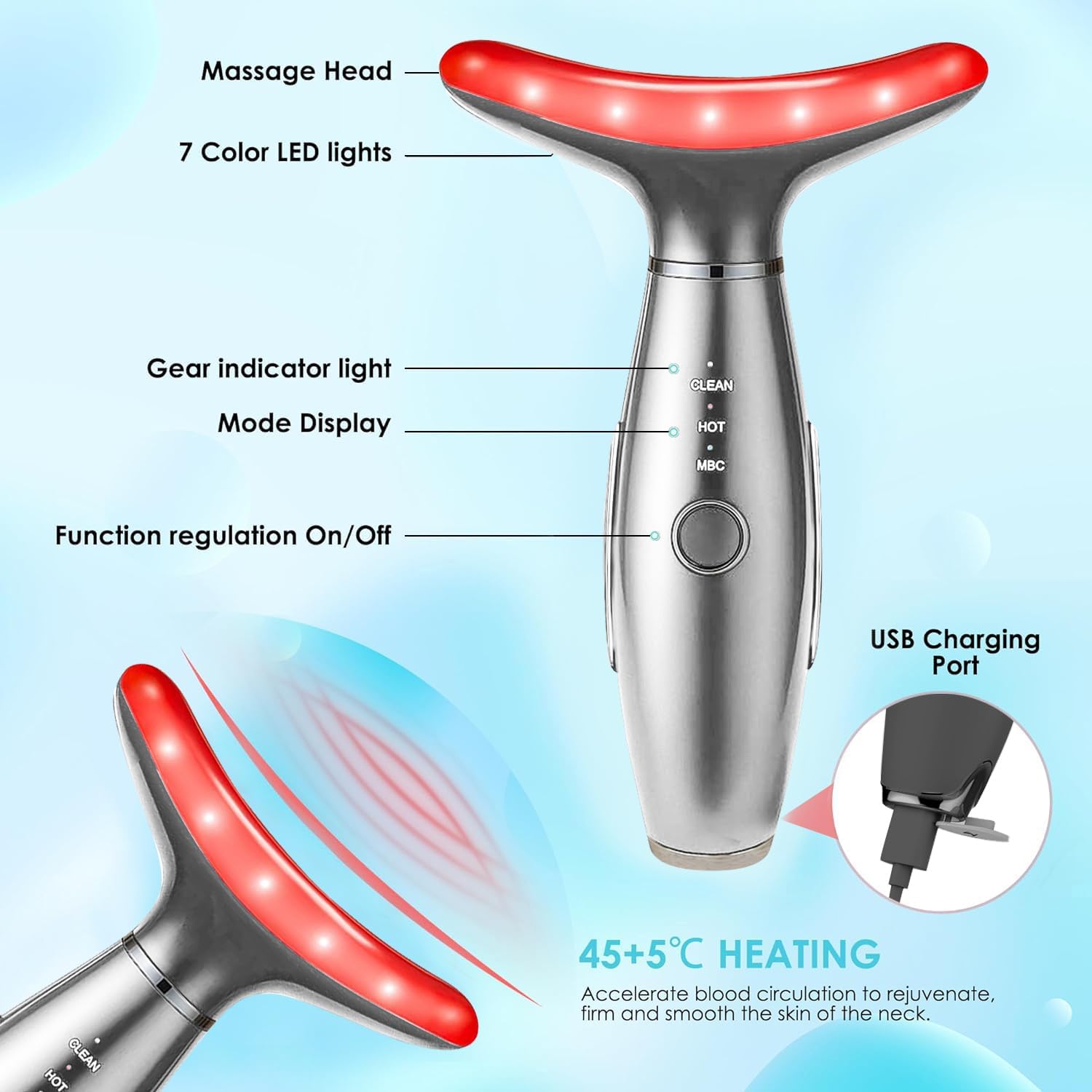 Face Massager -7 Color Red-Light-Therapy for Face and Neck for Wrinkles, Double Chin, Vibrating Facial Massager with Thermals (Silver)