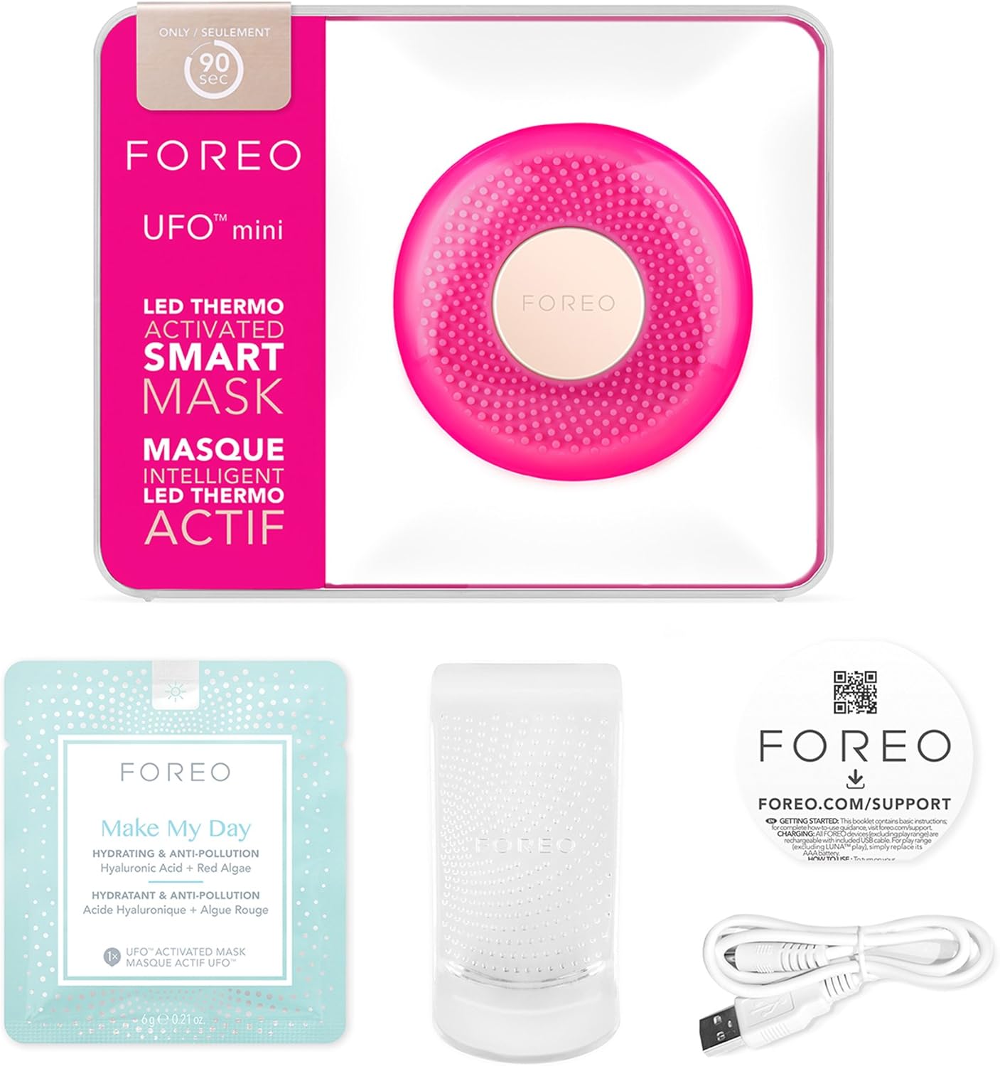 Foreo Ufo Mini Full Facial Led Mask Treatment, Red Light Therapy, Face Masks Beauty Treatment, Korean Skincare, Thermotherapy & Face Massager, Moisturiser, Increased Skin Care Absorption, Pearl Pink