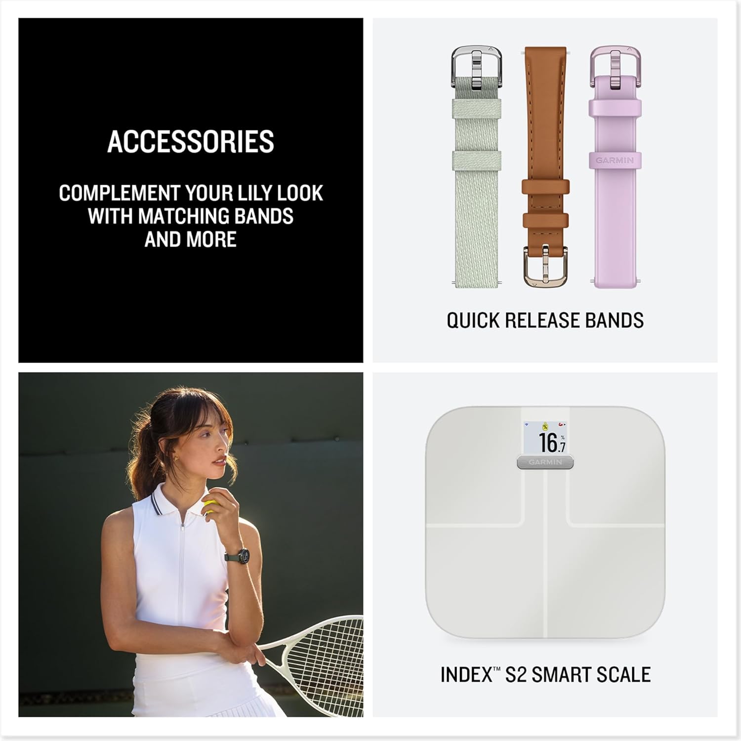 Garmin Lily 2 Active GPS 38mm Smartwatch, Stylish Smaller watch, Fitness Tracker with Hidden Display, Sports apps,Patterned Lens, Bright Touchscreen Display, up to 9 days battery life, Cream Gold