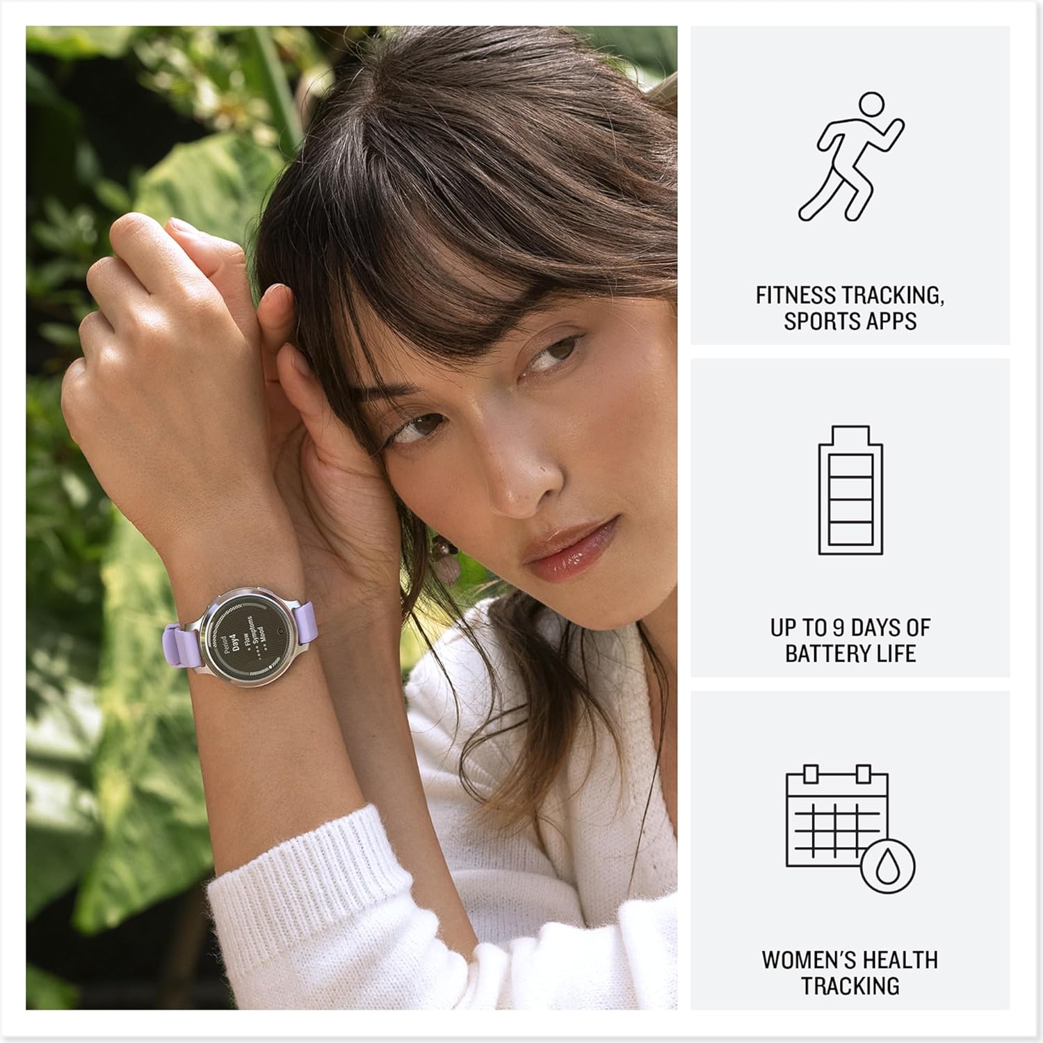 The Garmin Lily 2 Active GPS Smartwatch is designed for those who appreciate both style and functionality. With its 38mm size, this smaller watch is perfect for a comfortable fit. It features a bright touchscreen display and a patterned lens that enhances its aesthetic appeal. The smartwatch includes various sports apps, making it a great companion for fitness enthusiasts. Additionally, it boasts a battery life of up to 9 days, ensuring you stay connected without frequent recharging.