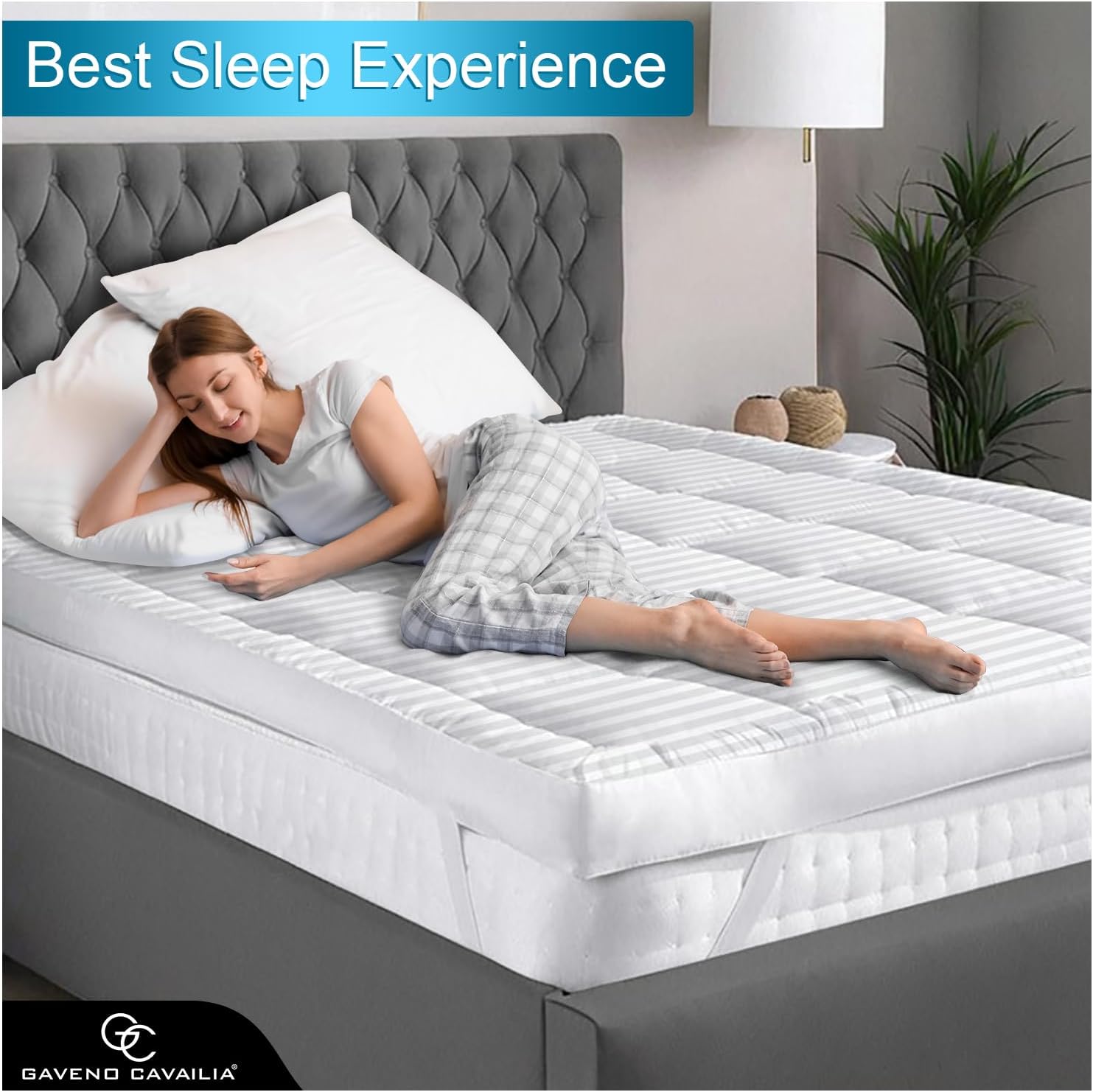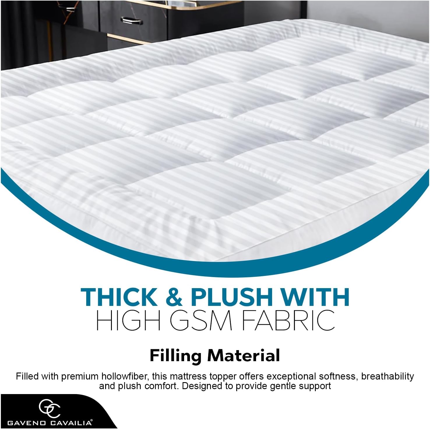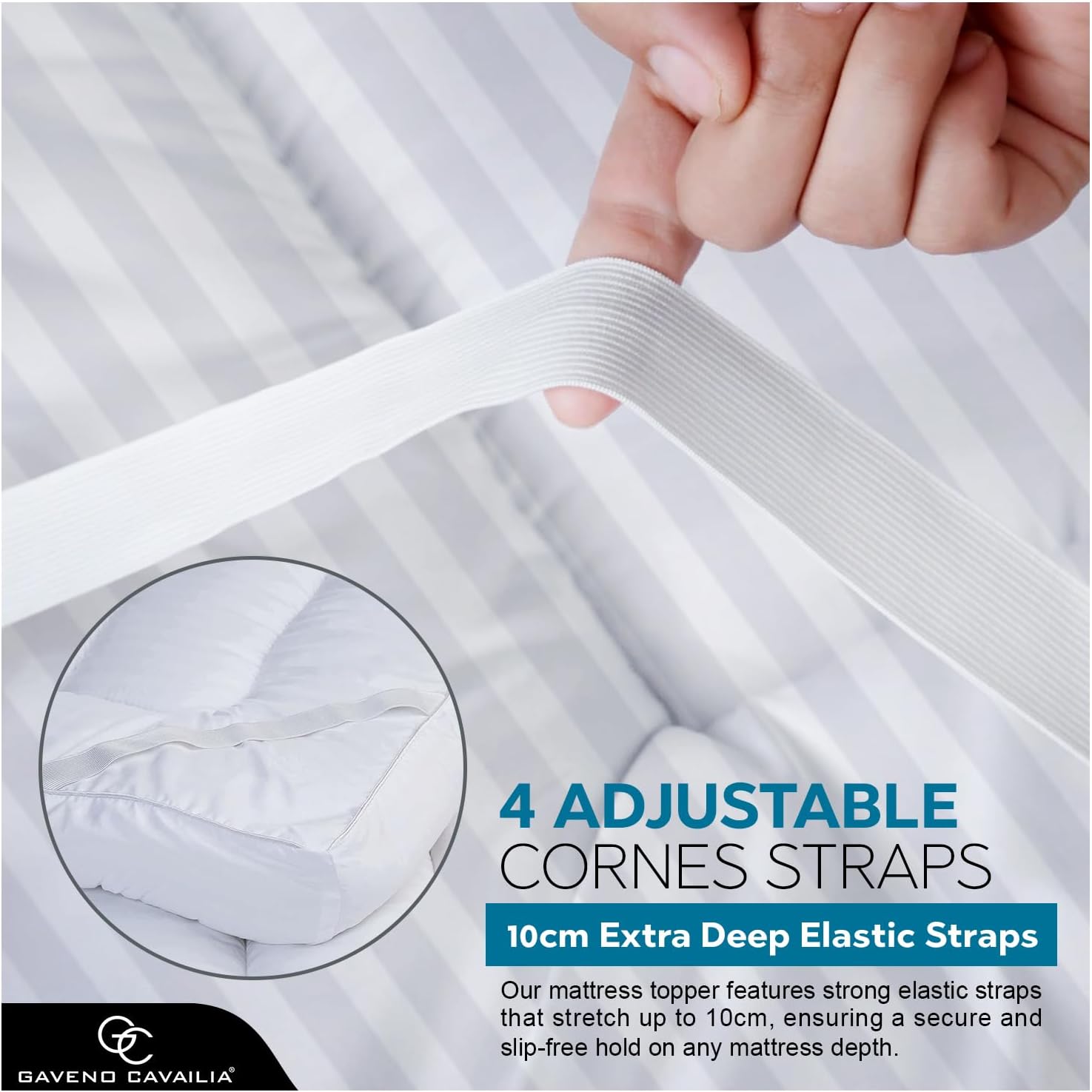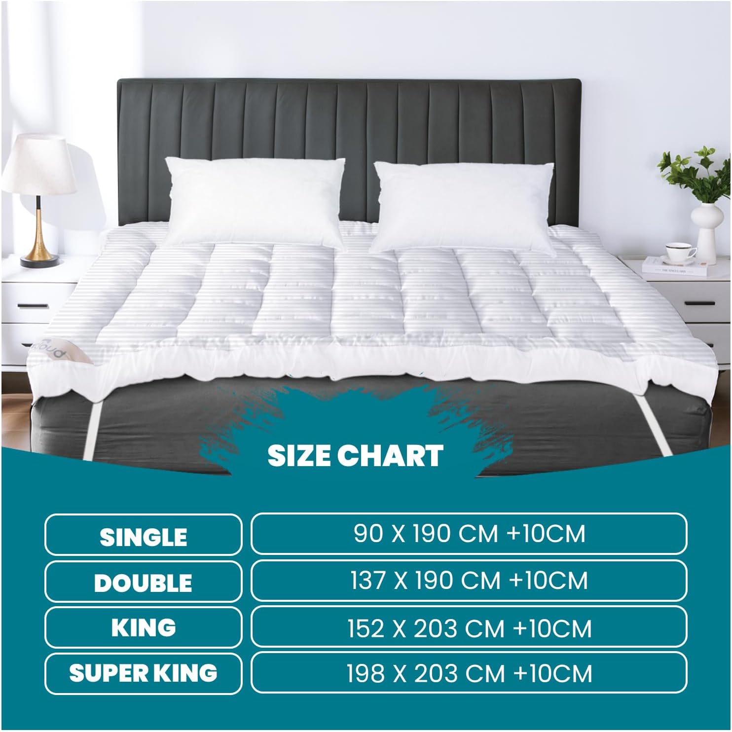 GC GAVENO CAVAILIA Satin Stripe Mattress Topper Super King – 10cm Thick Memory Foam Mattress Topper 198 x 203 cm – Hypoallergenic Mattress Pad with Elastic Straps – Premium Superking Mattress Toppers