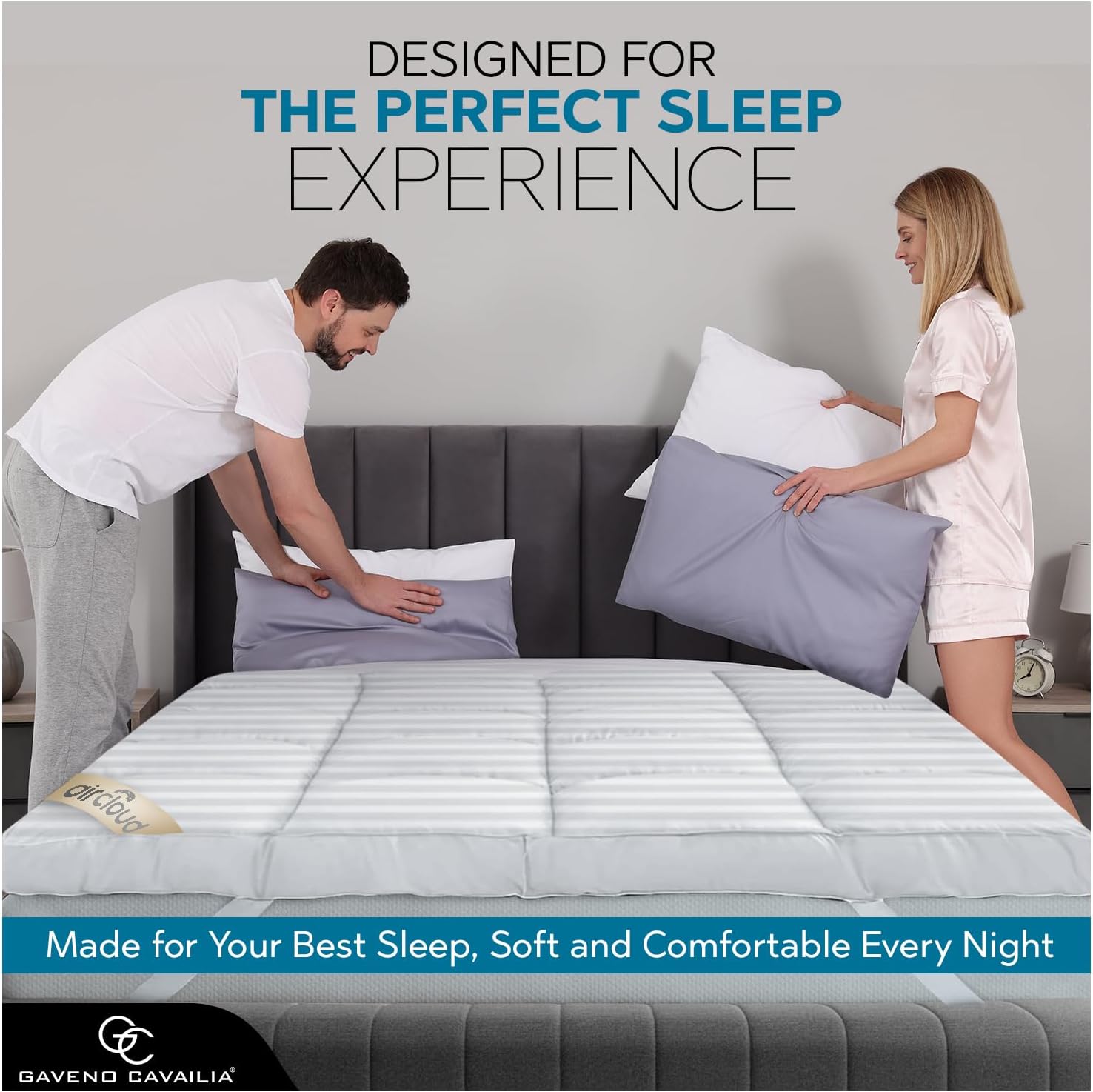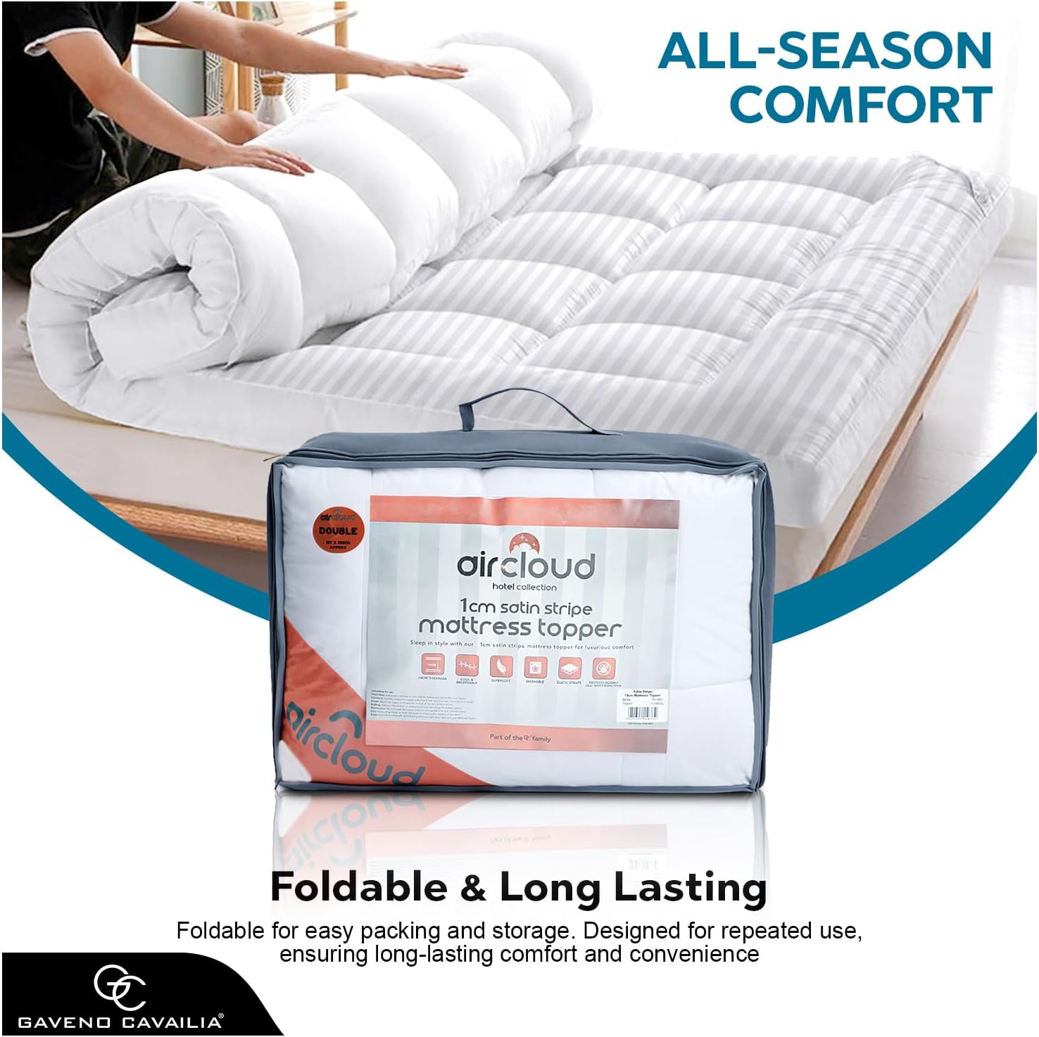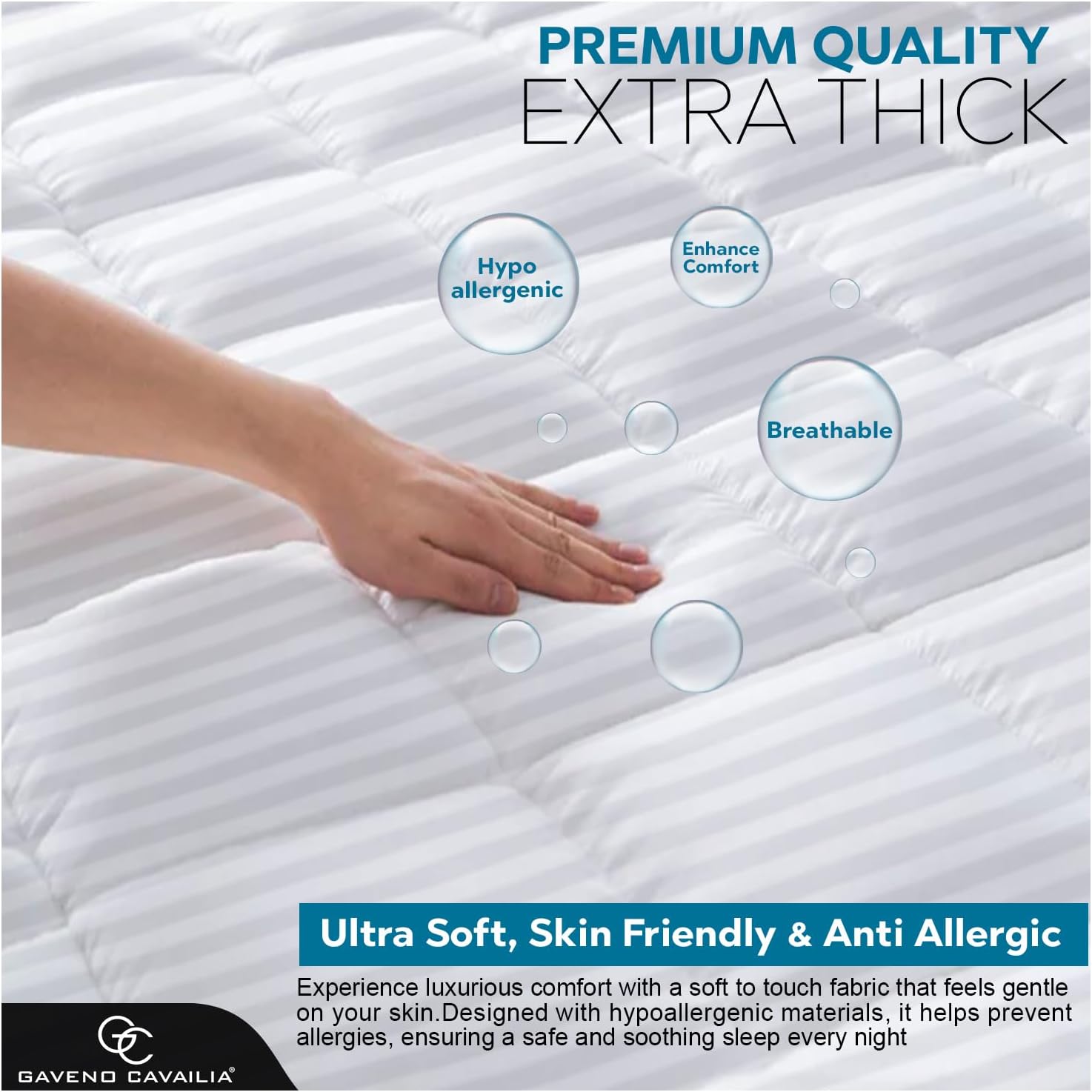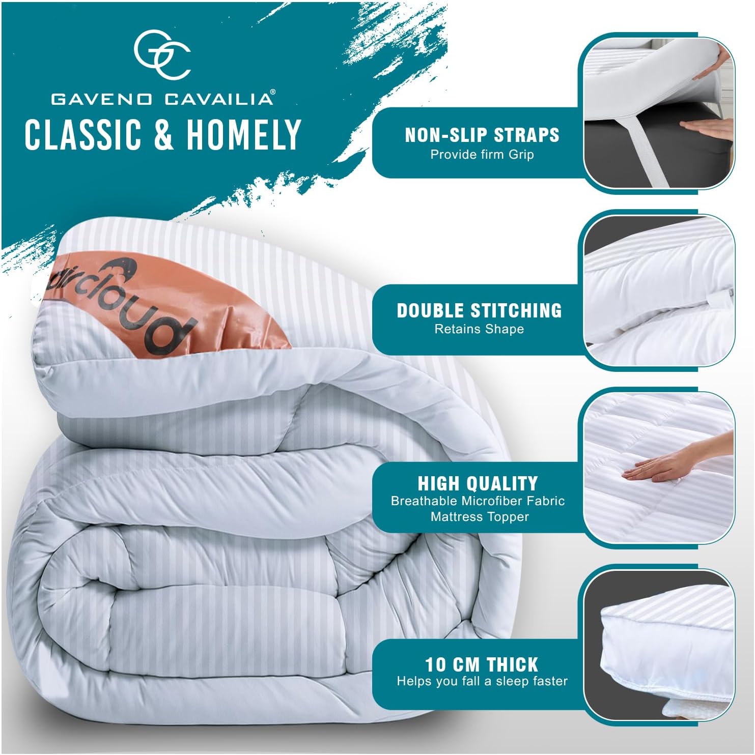 GC GAVENO CAVAILIA Satin Stripe Mattress Topper Super King – 10cm Thick Memory Foam Mattress Topper 198 x 203 cm – Hypoallergenic Mattress Pad with Elastic Straps – Premium Superking Mattress Toppers