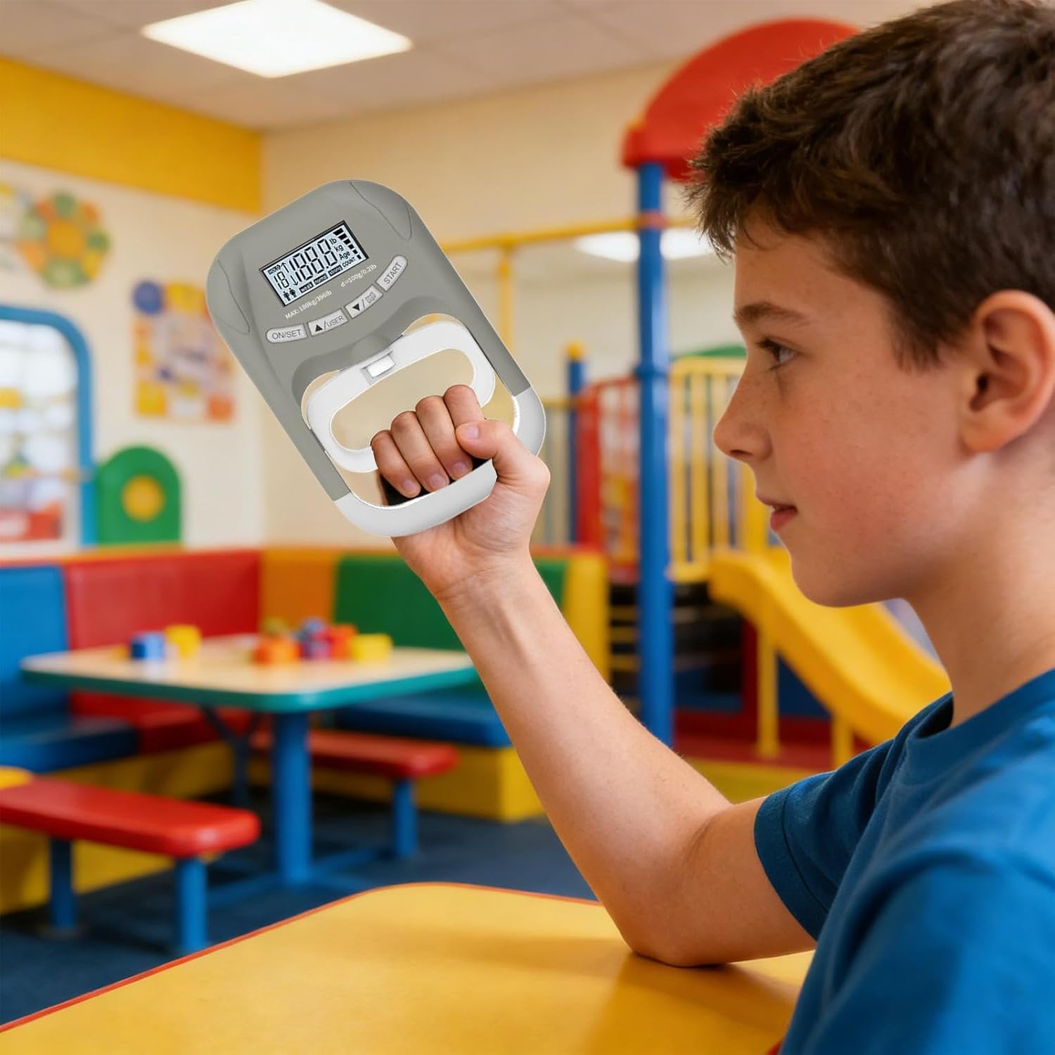 Grip Tester – Digital Display Tool, Battery Powered Gear, 180kg Capacity, Muscle Strength Measurement Function, Sports Recovery Category, Portable Blue Size Home Gym Office