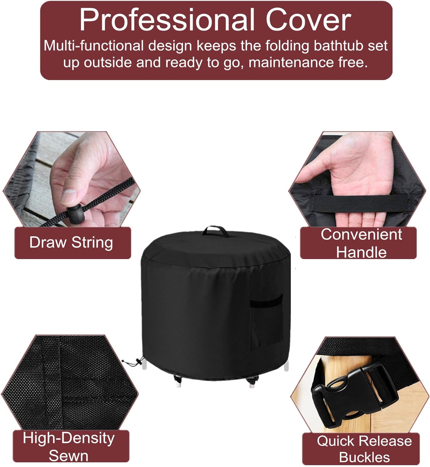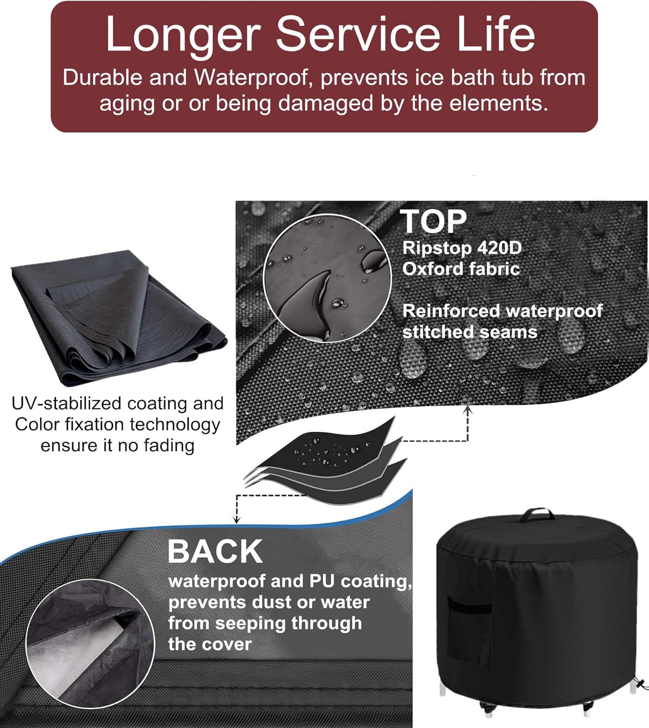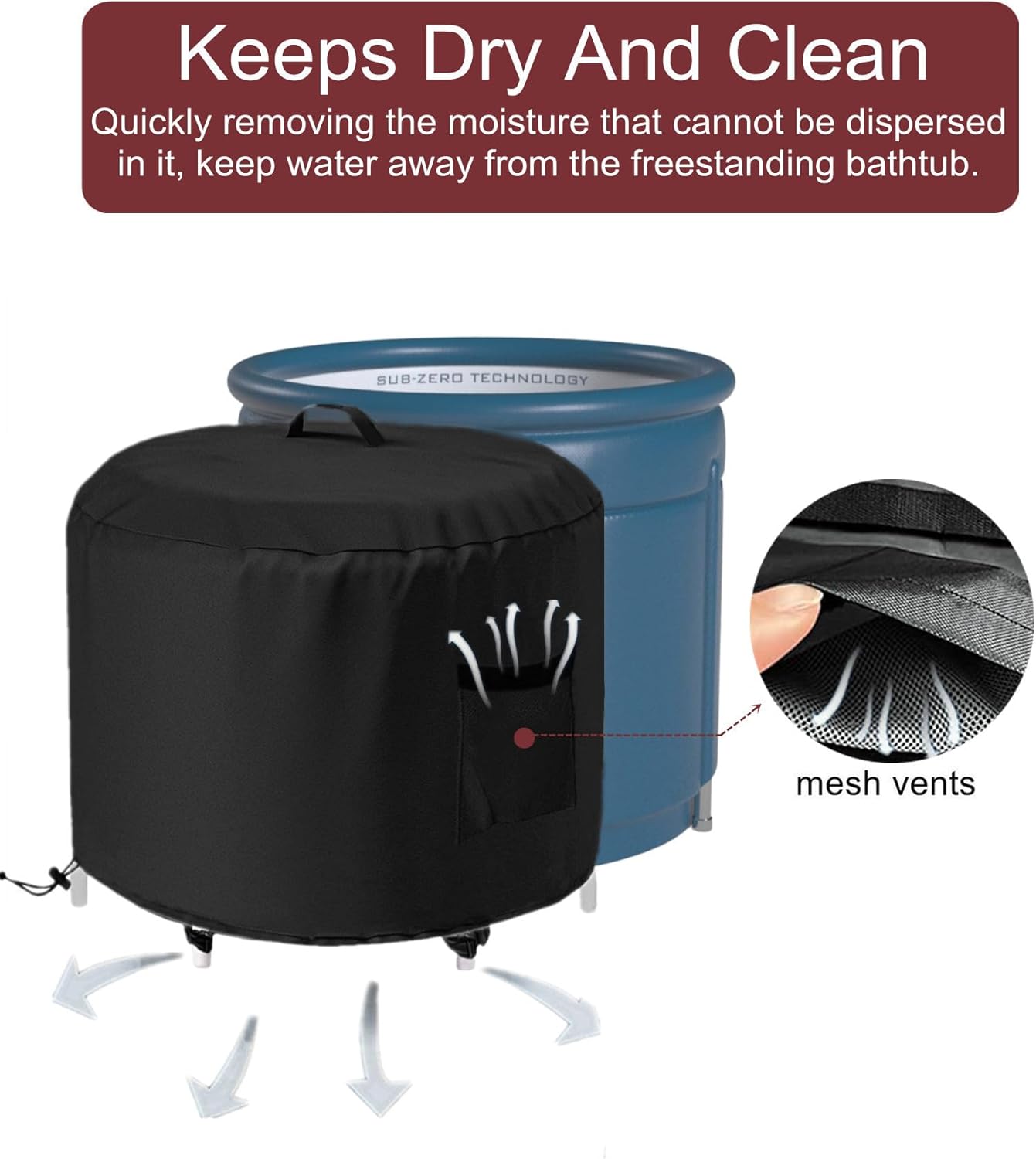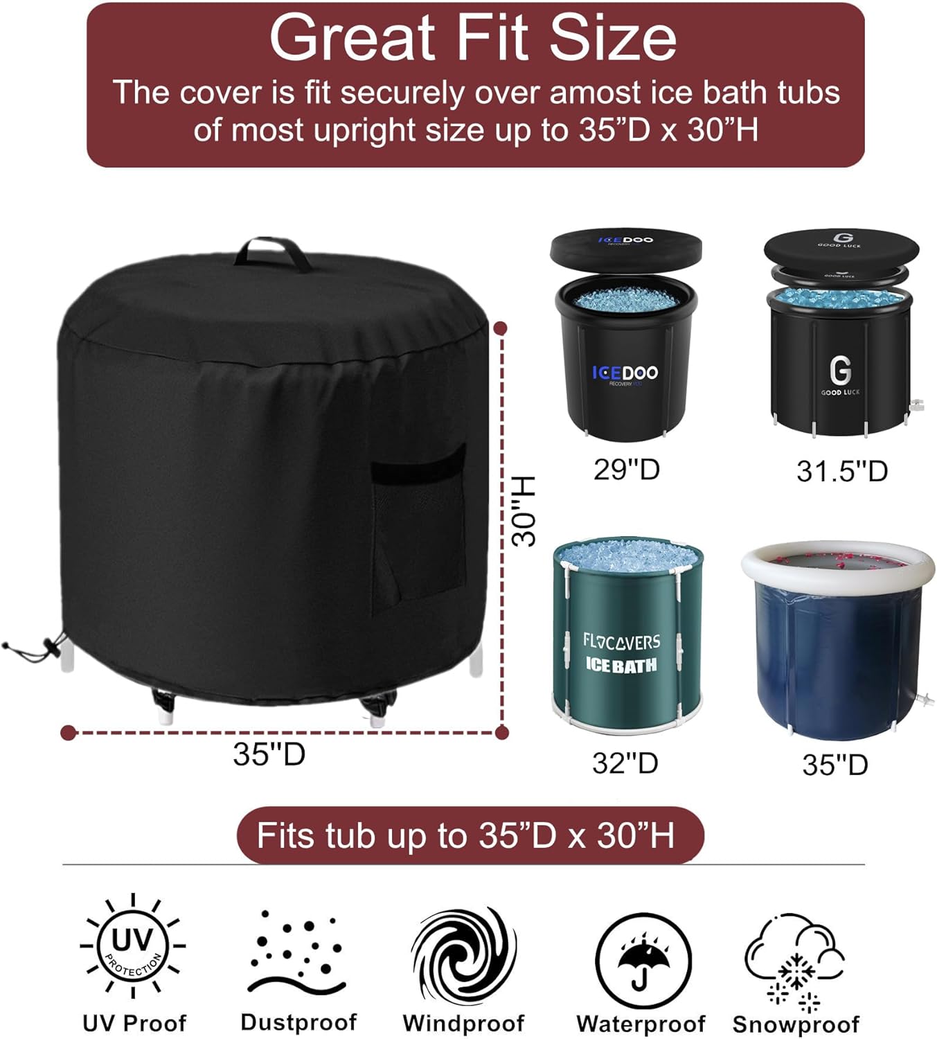GS Alderaul Portable Ice Bath Tub Cover, Waterproof, Black, Drawstring Closure, Fits Most Upright Ice Bath Tubs Up to 35’L x 35’W x 30’H
