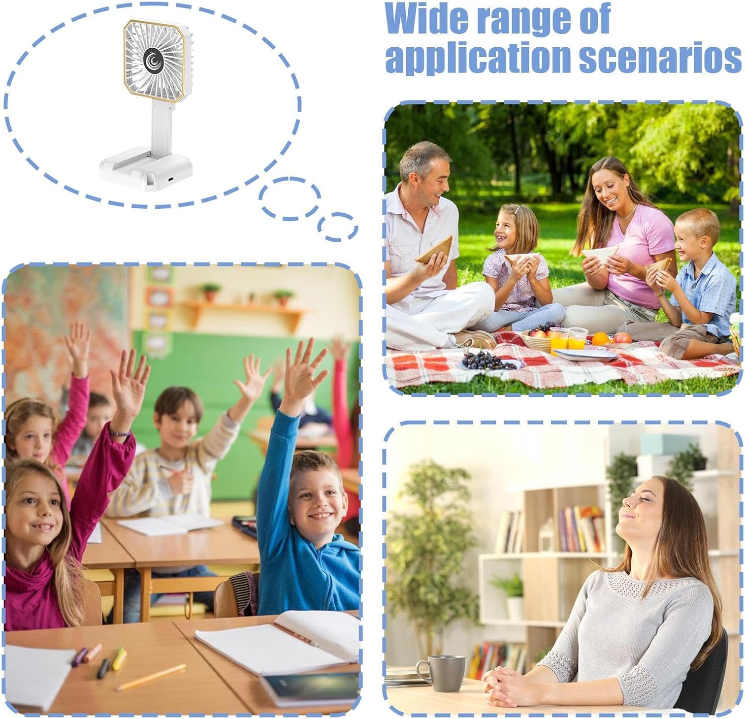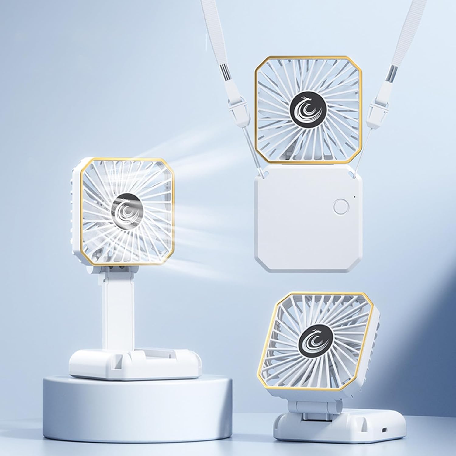 Hand Held Fan, Folding Neck and Desk Cooling Device, Rechargeable Air Cooler, Phone Stand Function, Compact Portable Fan for Beach, Camping, Travel, Personal Use, Summer Gadget