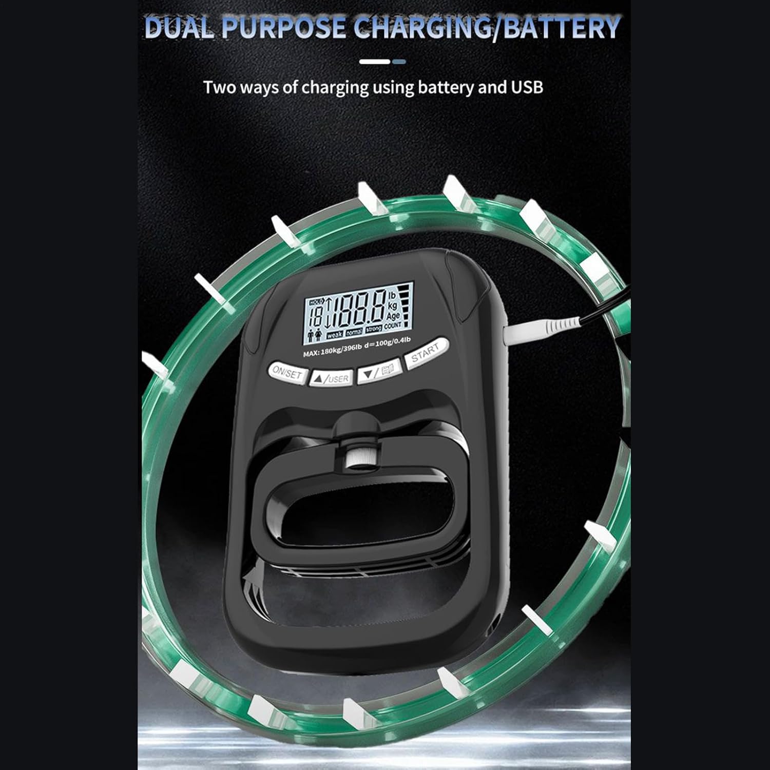 Hand Strength Tester 180 kg Battery Operated Digital Display Hand Trainer Grip Strength Meter Training Device for Body Recovery Sports Office Home Gym Travel Women