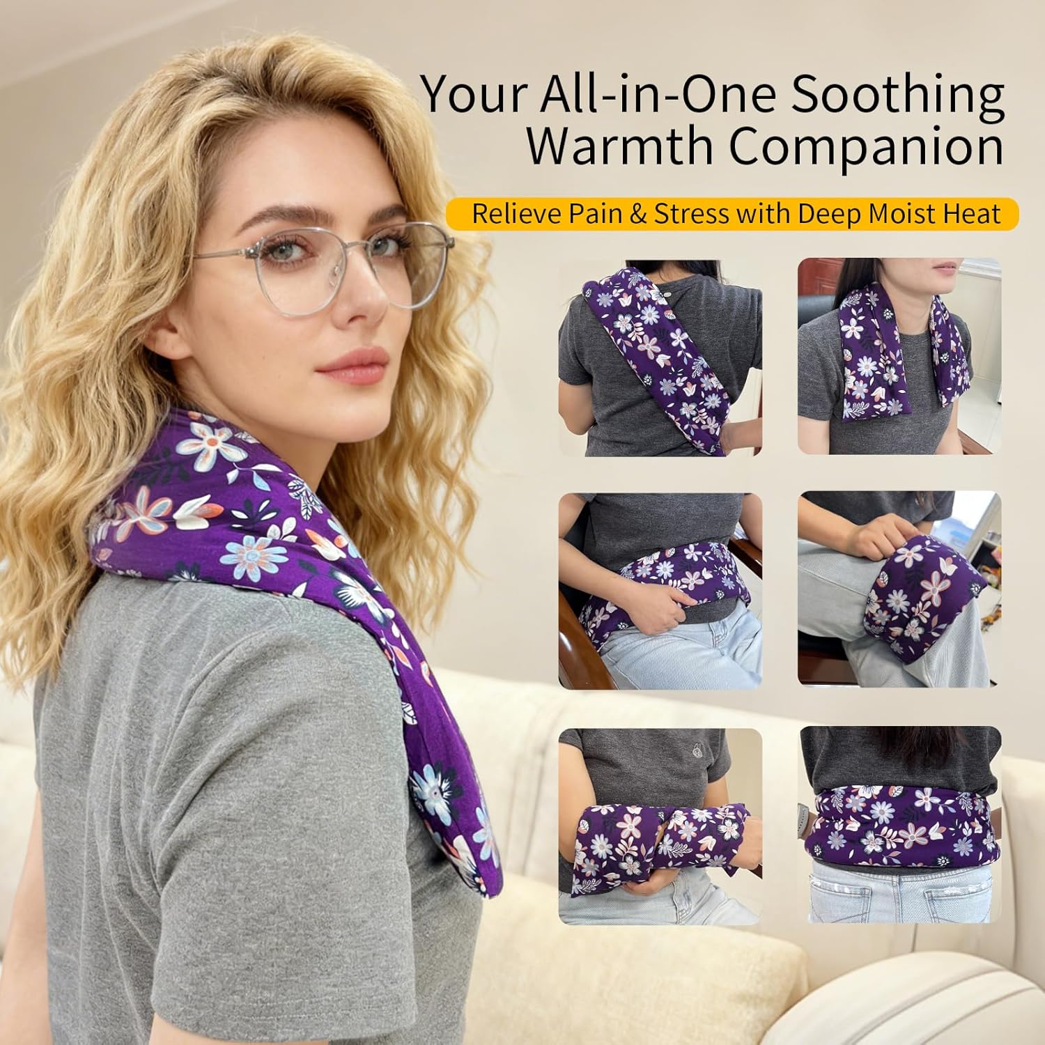 Heating pad for Neck Shoulders and Back Microwavable Washable 27×5“ Microwave Rice Bags for Heat Therapy Reusable Hot Pack for Cramps Moist Warm Bean Bag for Pain Relief Levender Scented Aromatherapy
