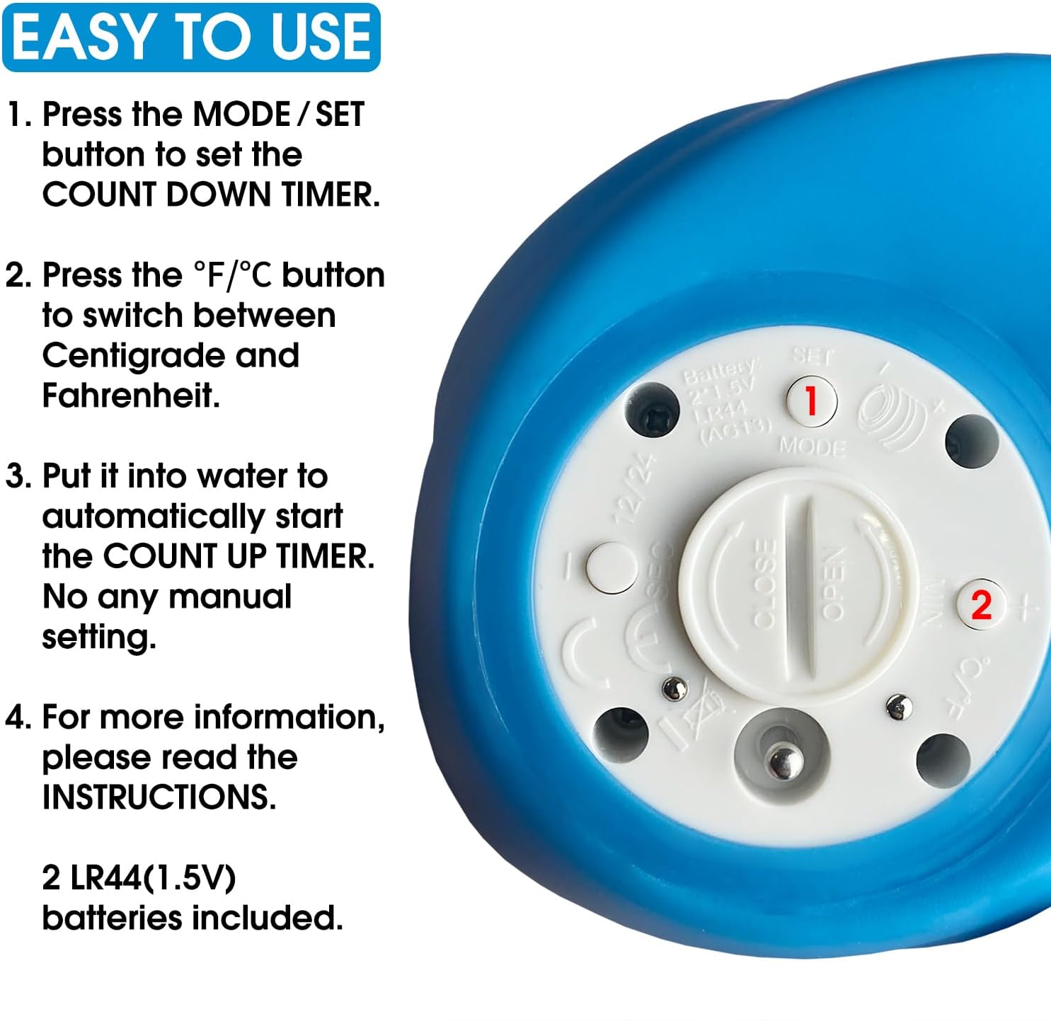 Ice Bath Thermometer & Timer, 100% Waterproof, Floating Water Thermometer for Ice Bath with Count Down/Up Timer Alarm, Blue Duck, Clear Digital Display, Cold Plunge Accessories, Batteries Included