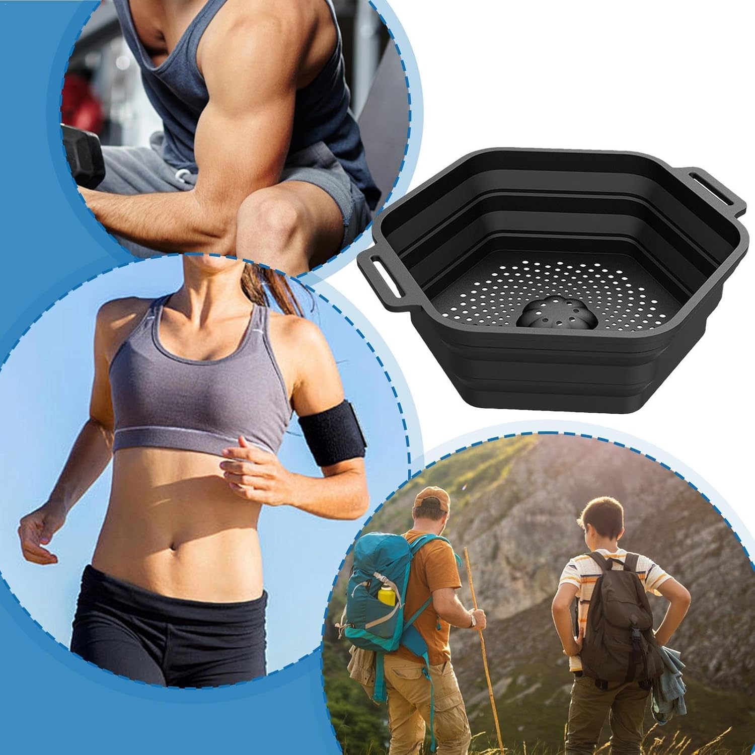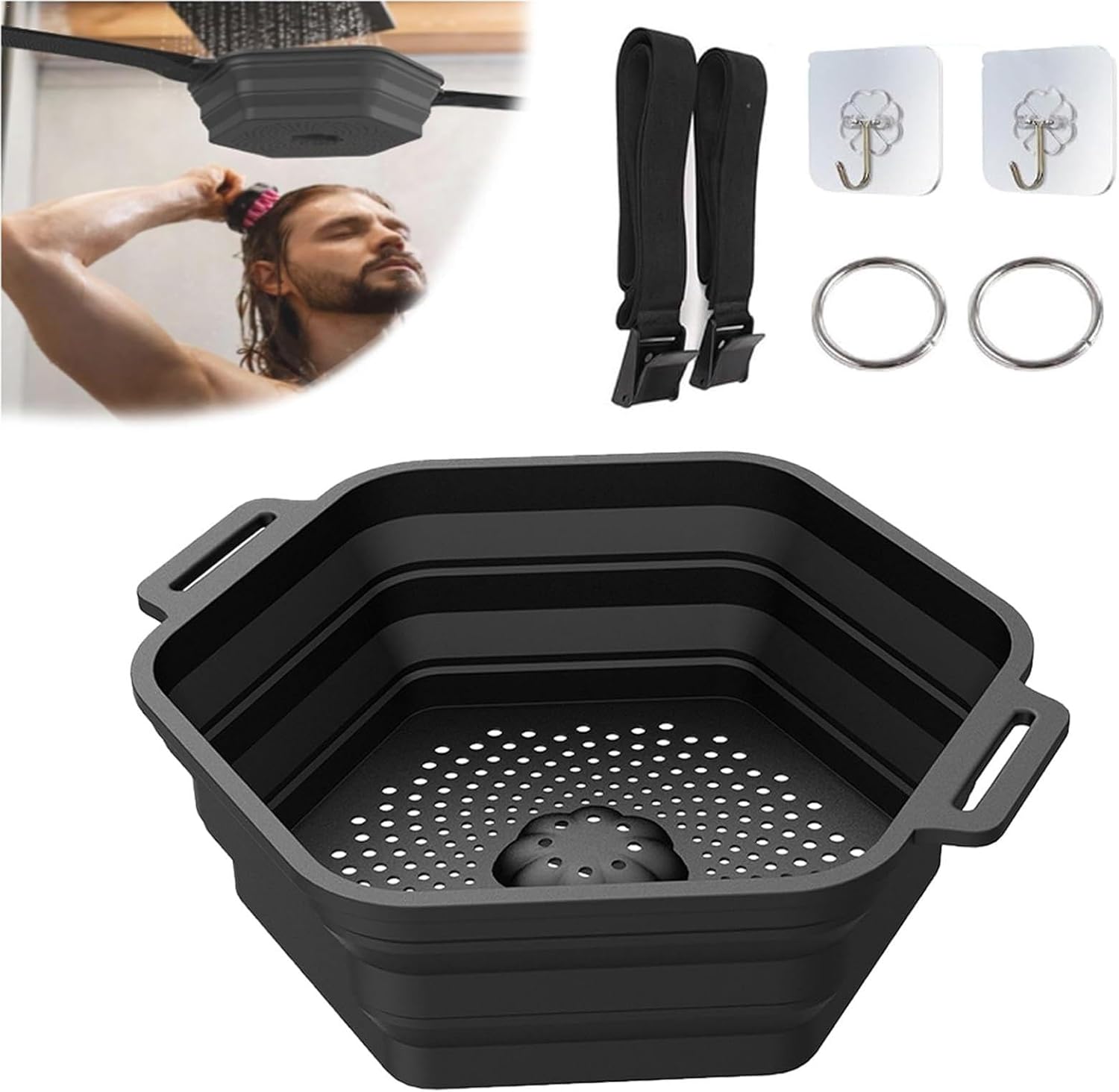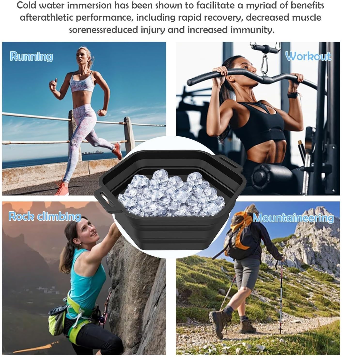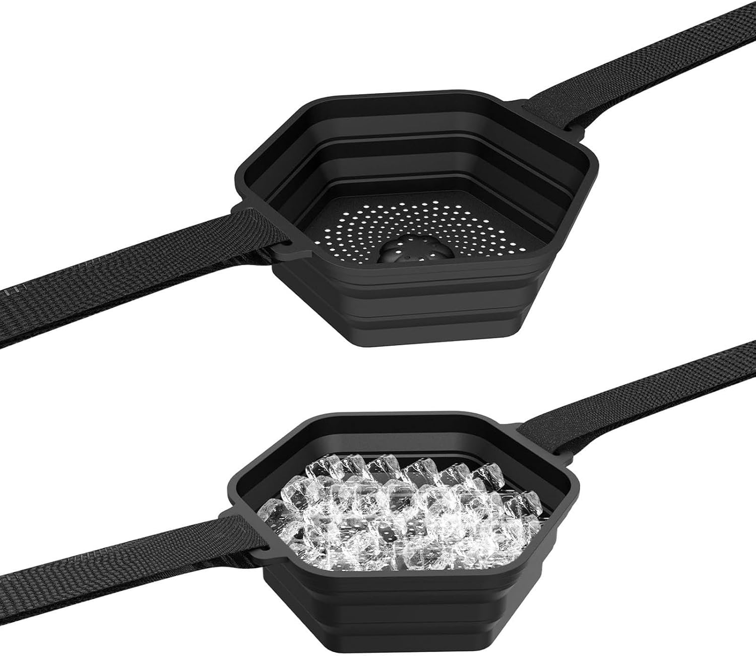 Ice Shower, Ice Container for Shower, Portable Ice Bath Accessories, Ice Bath Strainer Container, Shower Ice Bath Tool, Foldable Silicone Ice Bath Bucket for Bathing, with Adjustable Strap and Fixed