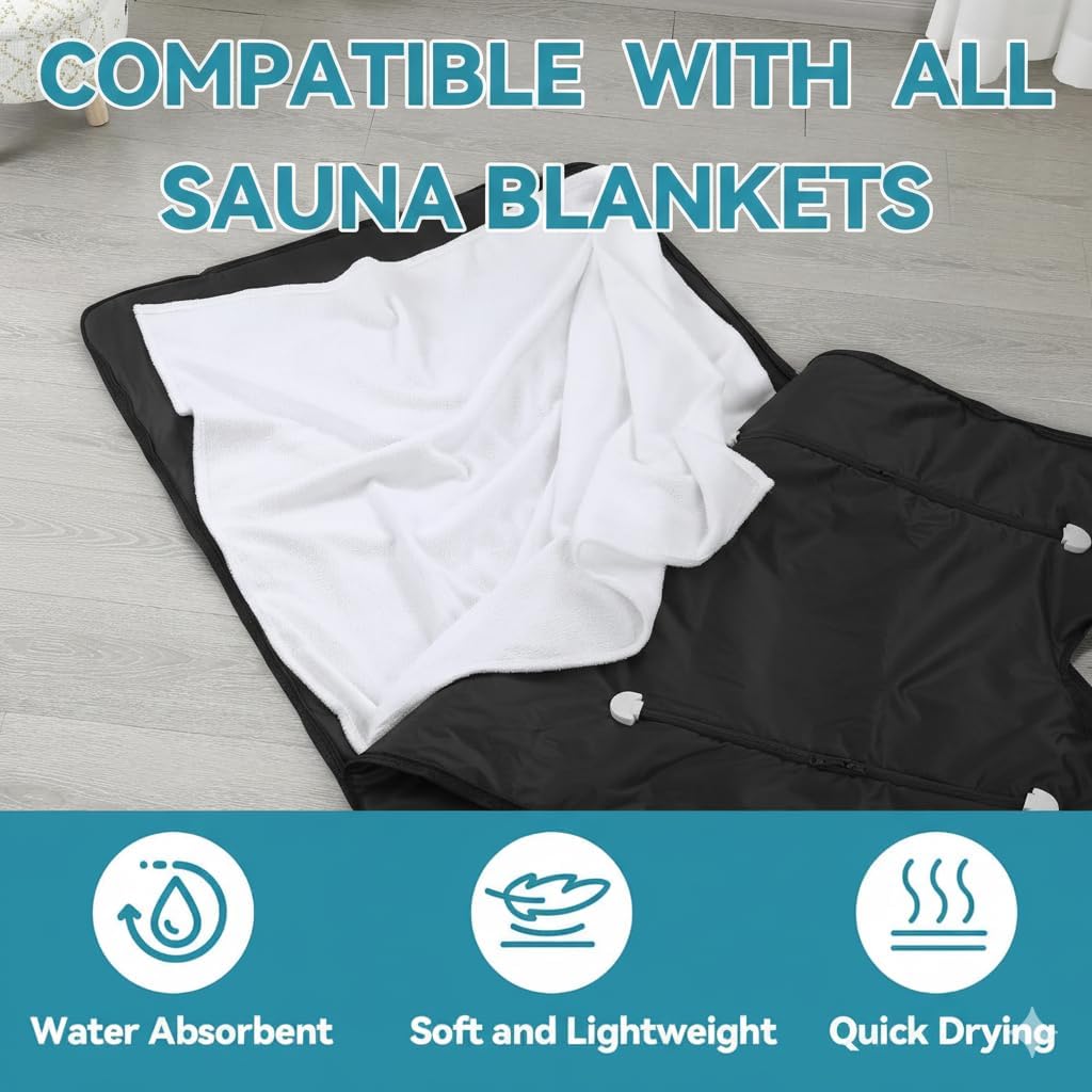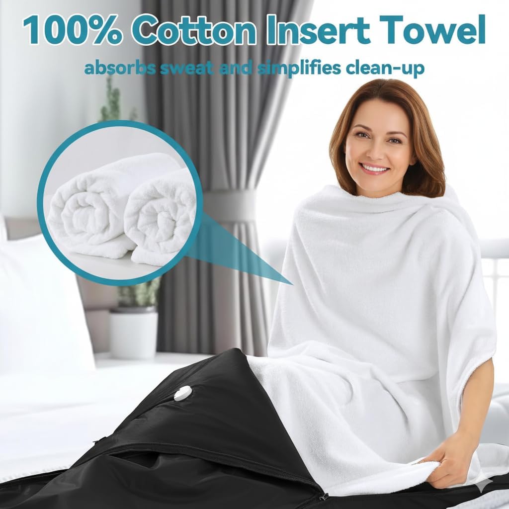 The CAMLARD Infrared Sauna Blanket Insert Towel is crafted from 100% cotton, ensuring a soft and comfortable experience during your sauna sessions. Measuring 70"x30", it is designed to fit most portable sauna blankets snugly, providing a secure wrap without the bulk. This towel is lightweight and ultra-absorbent, effectively soaking up sweat while keeping your sauna blanket dry and odor-free.