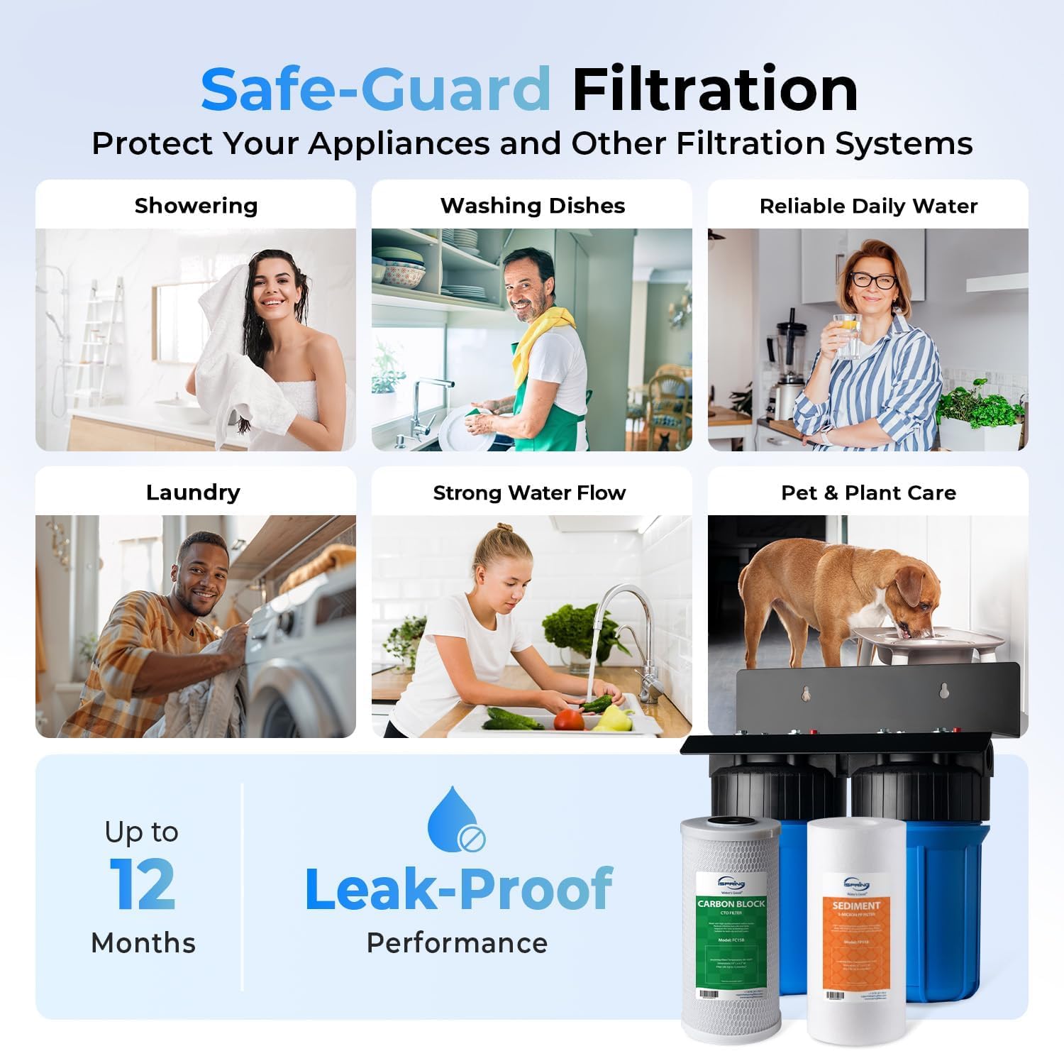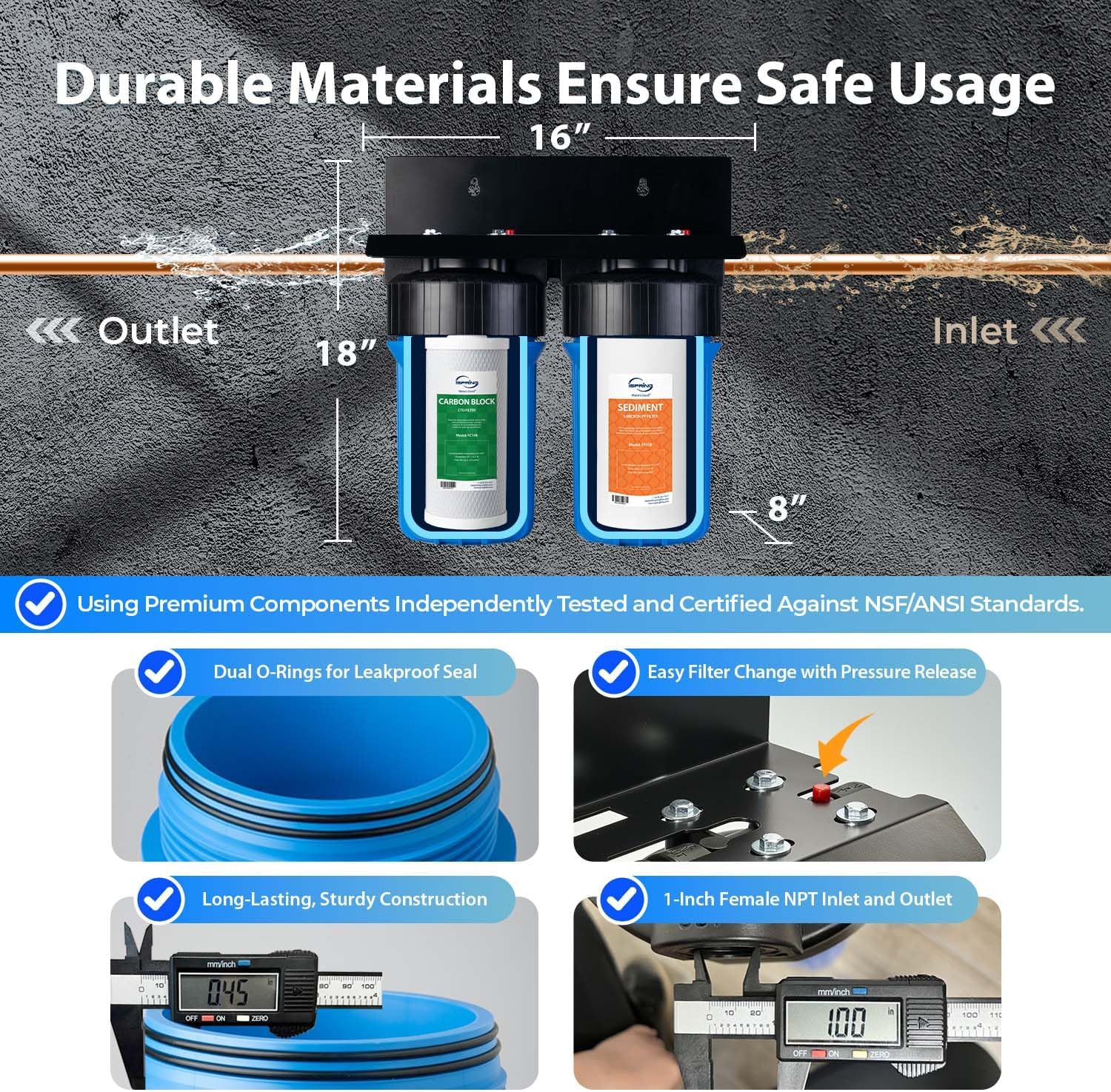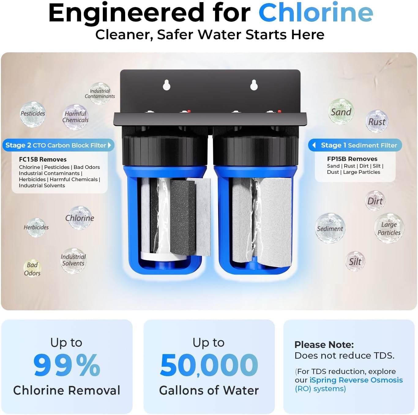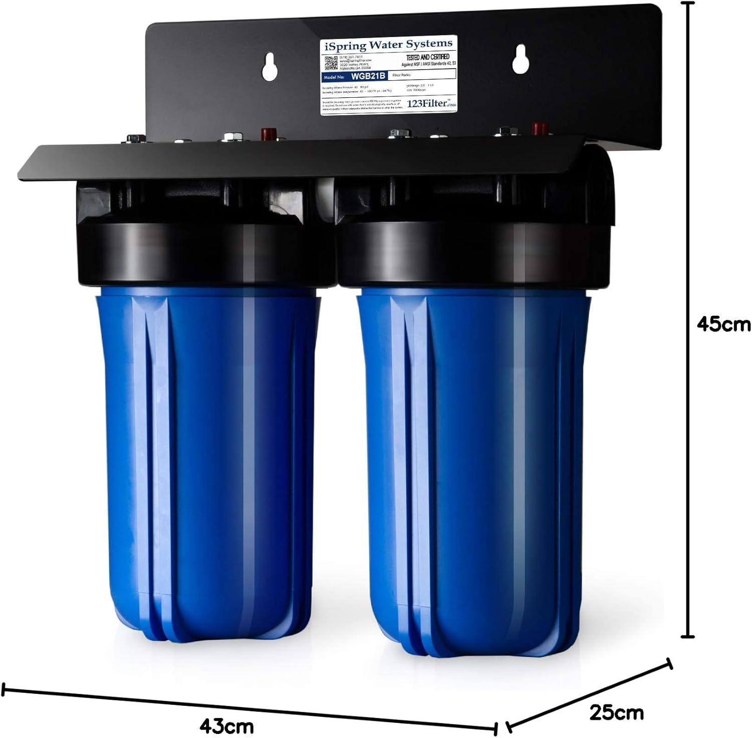 iSpring WGB21B 2-Stage Whole House Water Filtration System, with 10″ x 4.5″ Sediment CTO(Chlorine, Taste, and Odor) Filter, 1″ Inlet/Outlet