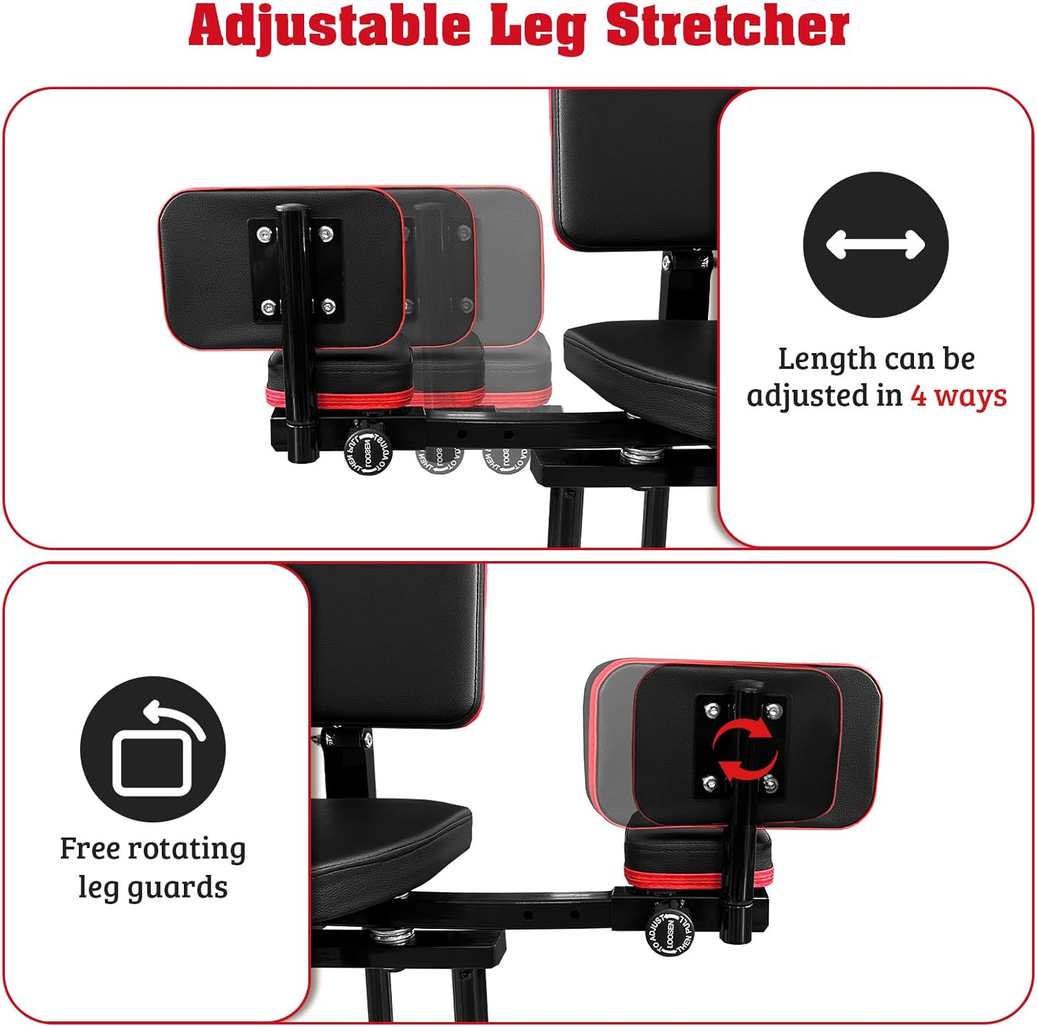 The Leg Stretcher is designed to enhance your flexibility with ease. Achieve a remarkable 230° stretch effortlessly, accommodating both outer and inner stretching routines. The sturdy PP rotating handwheel and universal wheels facilitate seamless stretching, allowing you to multitask while exercising. With adjustable lengths ranging from 24.4 to 29.5 inches, you can tailor your experience for optimal comfort. The leg baffles swivel freely to align with your movements, ensuring a personalized and safe stretch. This equipment is suitable for all ages and fitness levels, making it a versatile addition to your routine.