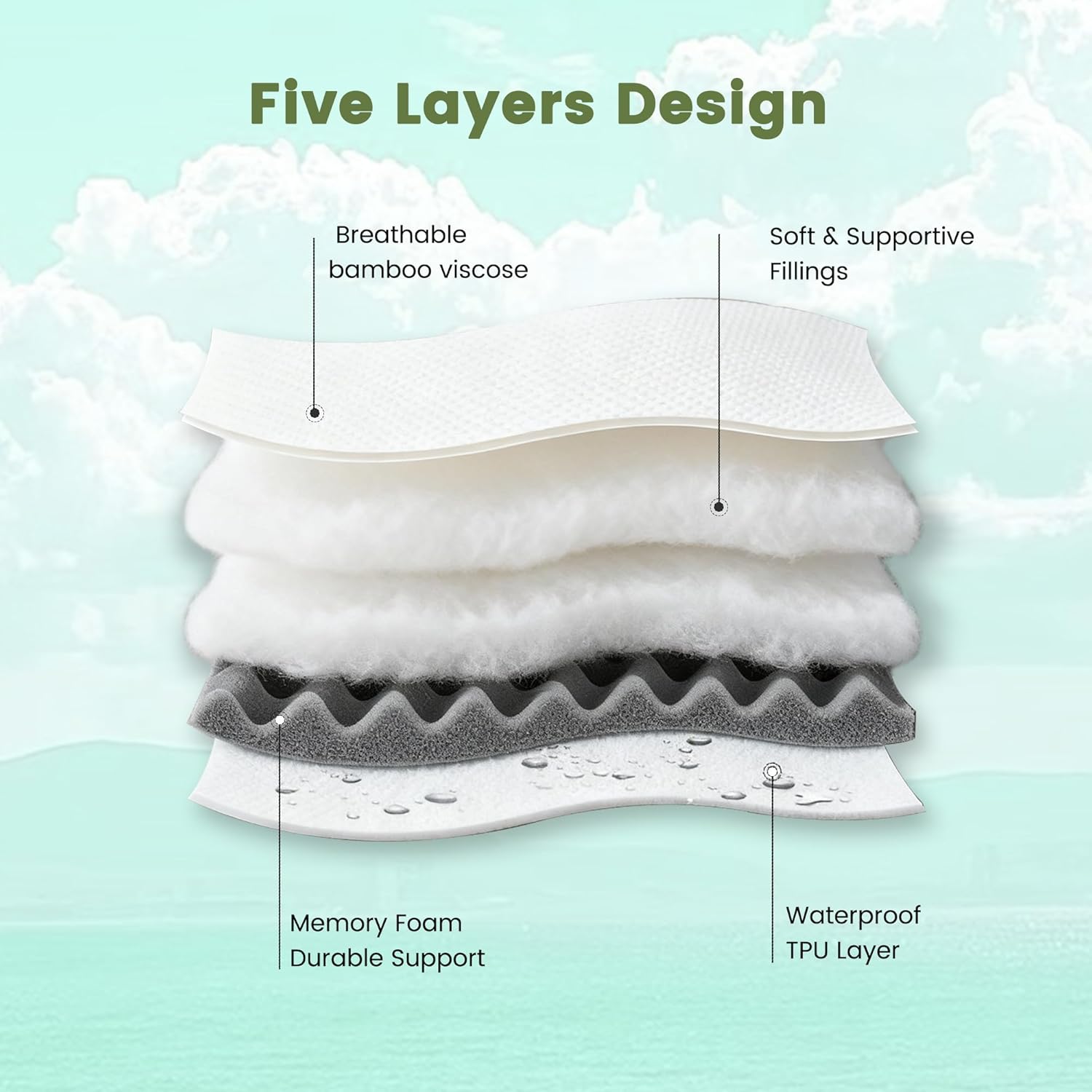 Breathable bamboo blend on one side, waterproof polyester on the other.