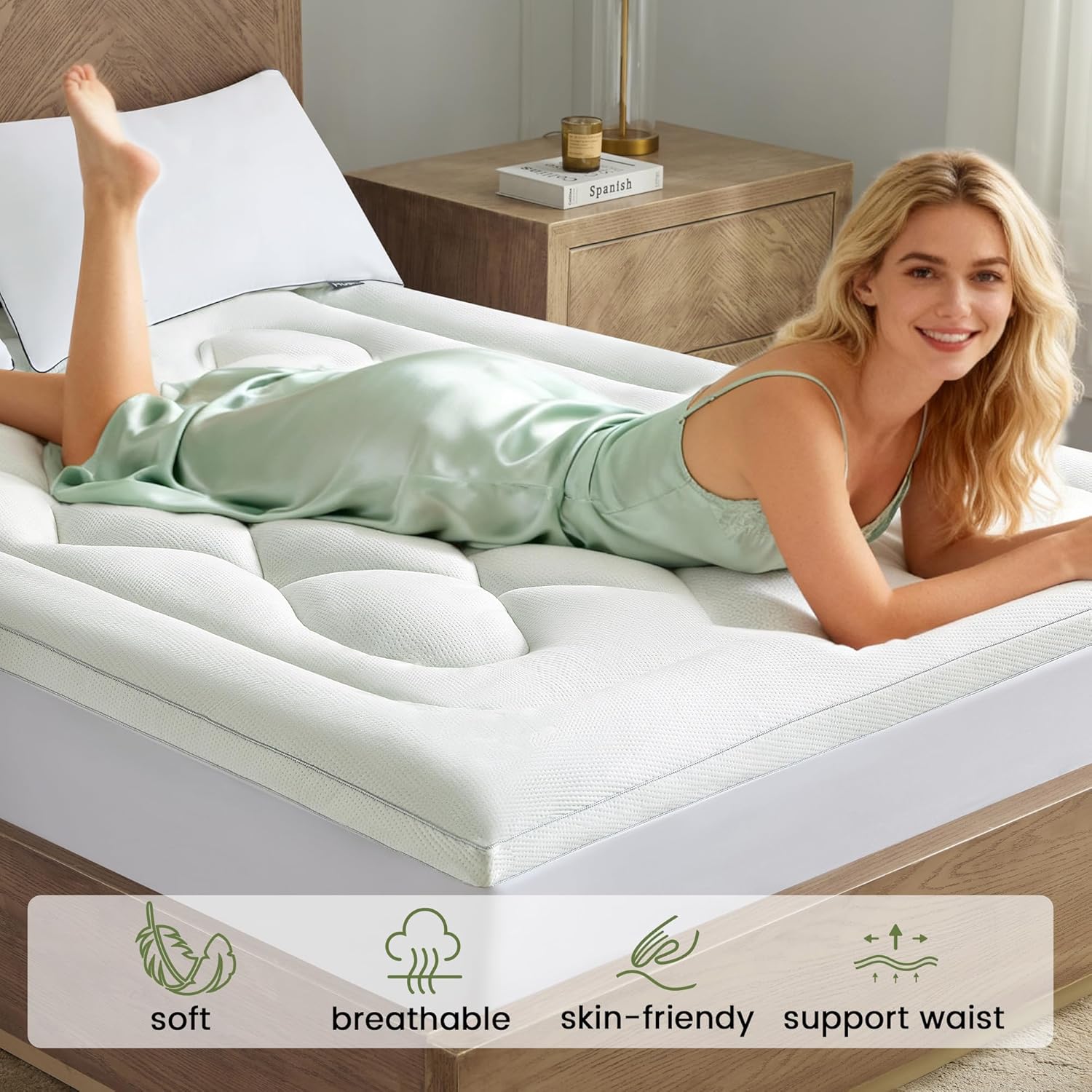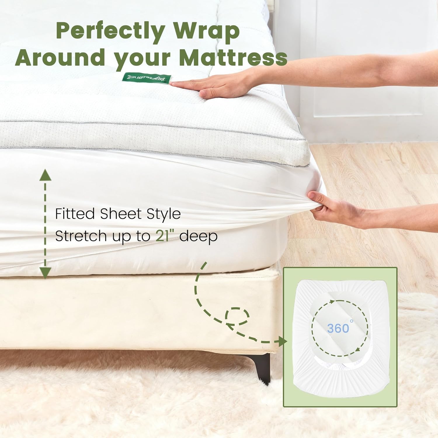 Mattress Topper California King Size Memory Foam Mattress Pad Bamboo Mattress Cover Waterproof for Back Pain Relief 6-21″ Deep Pocket Cooling Mattress Topper (72×84 inch, White)