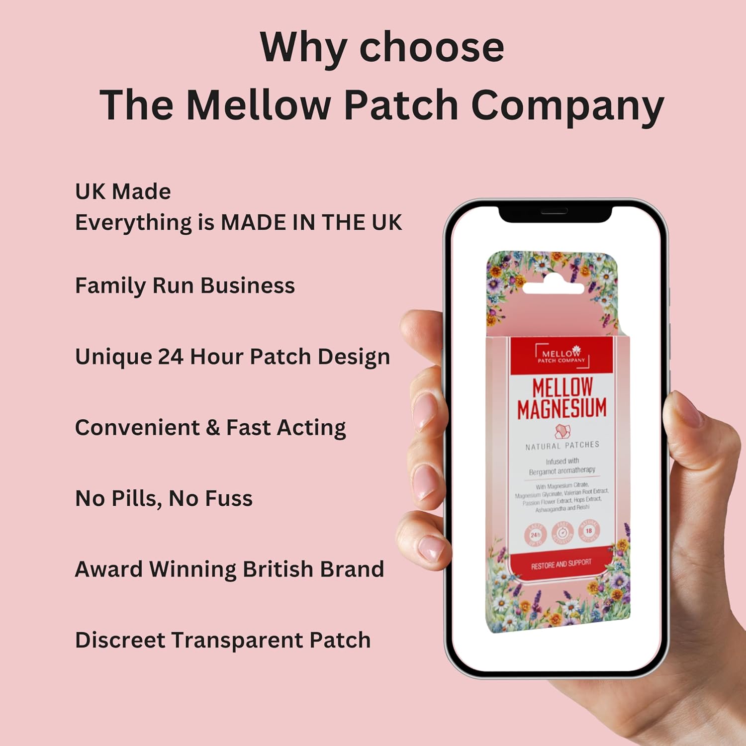 The Mellow Magnesium Patch is designed to help you relax, promote restful sleep, and support overall well-being by soothing tired muscles and easing occasional discomfort.