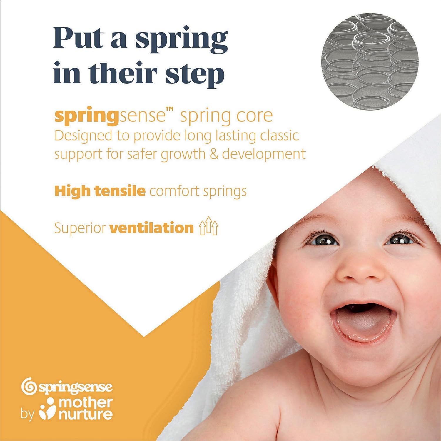 MOTHER NURTURE Space Saver Spring Cot Mattress, White, 100 x 50 x 10cm