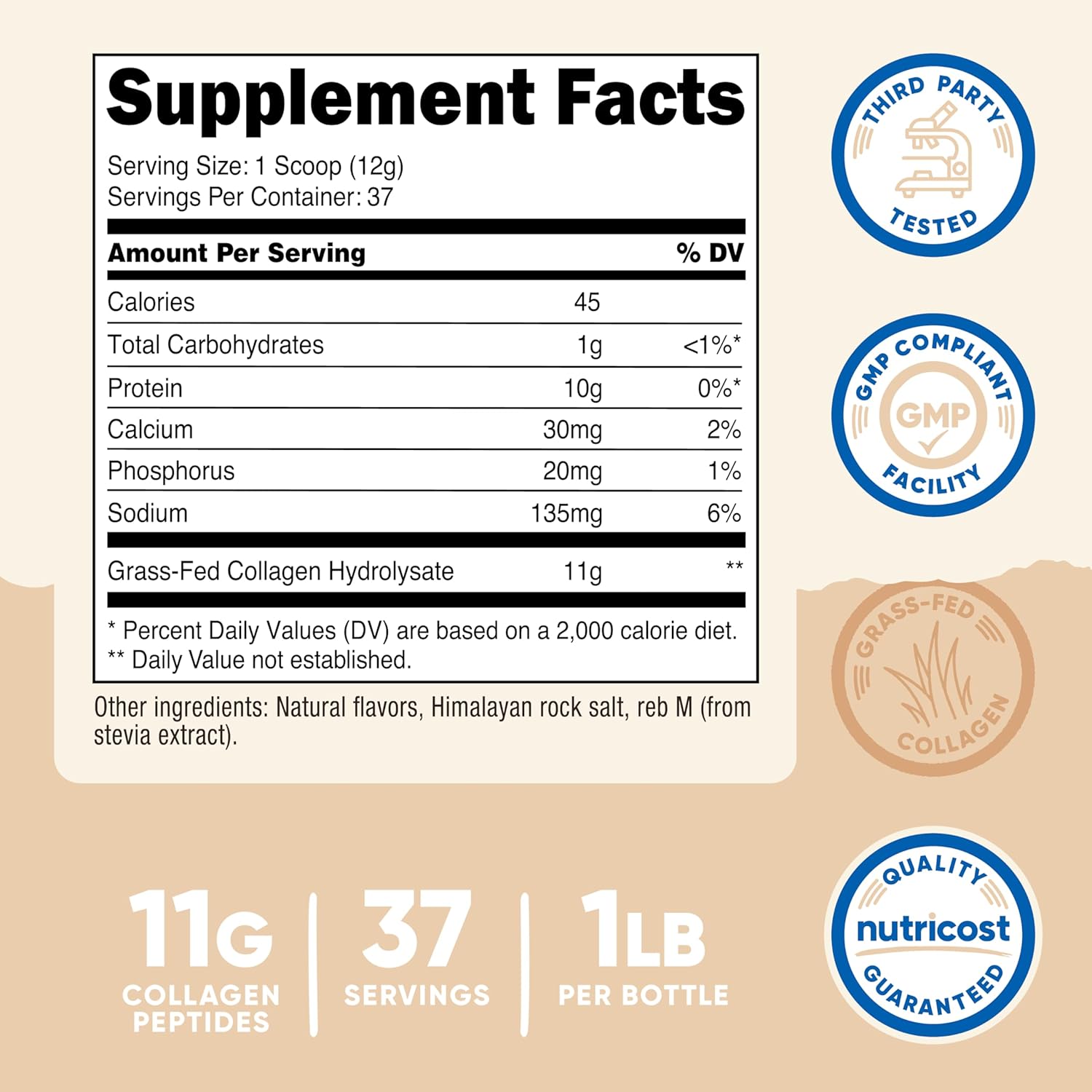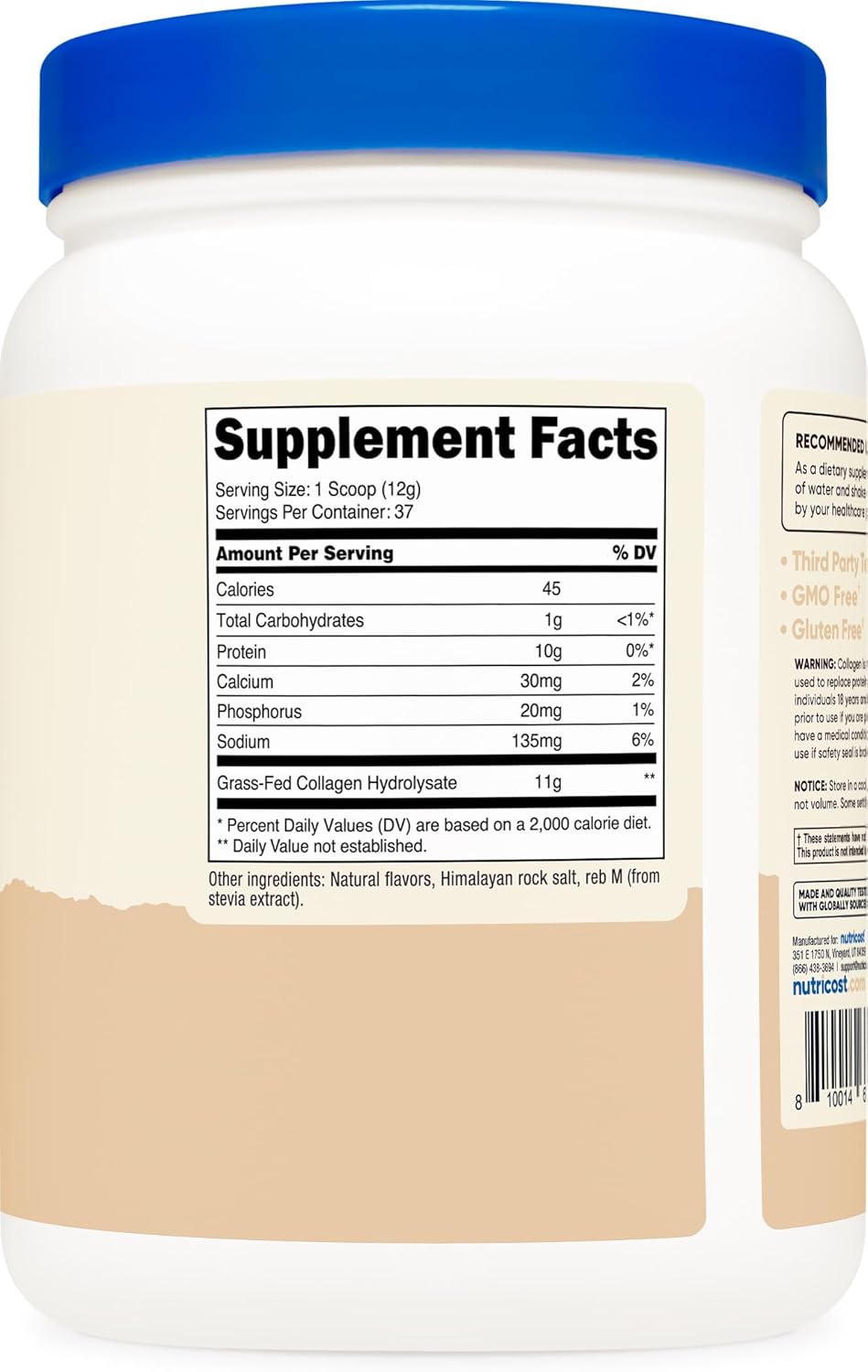 Nutricost Grass-Fed Collagen Powder Vanilla Flavored, 1 LB
