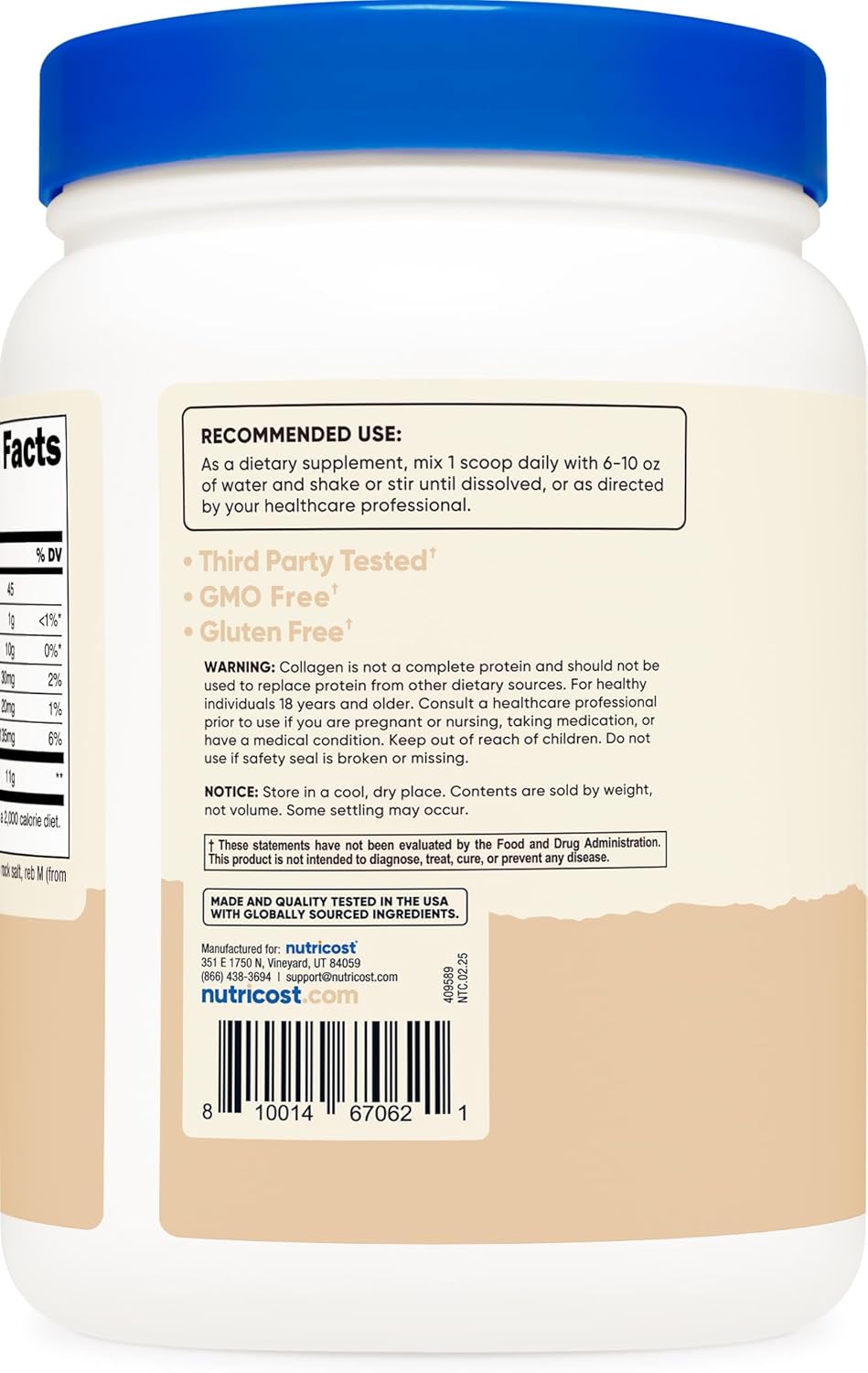 Nutricost Grass-Fed Collagen Powder Vanilla Flavored is designed to support your dietary needs. This product comes in a convenient 1 LB package, allowing you to easily mix it with water or your favorite beverage. Simply add 1 scoop to 6-10 ounces of water or as directed by your healthcare professional.
