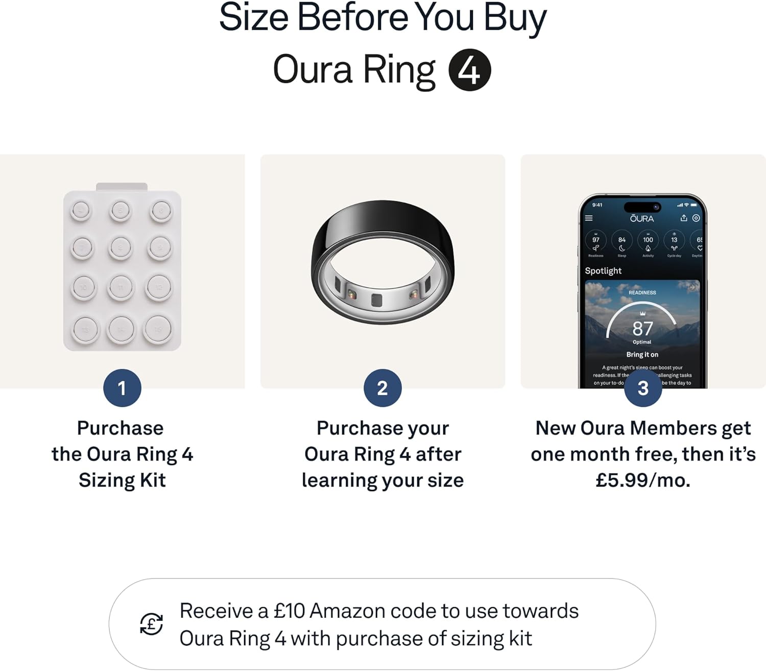 To ensure the perfect fit, the Oura Ring 4 comes with a sizing kit, allowing you to select the right size before purchasing. Its comfortable design means you can wear it throughout the day, whether at work or during leisure activities.