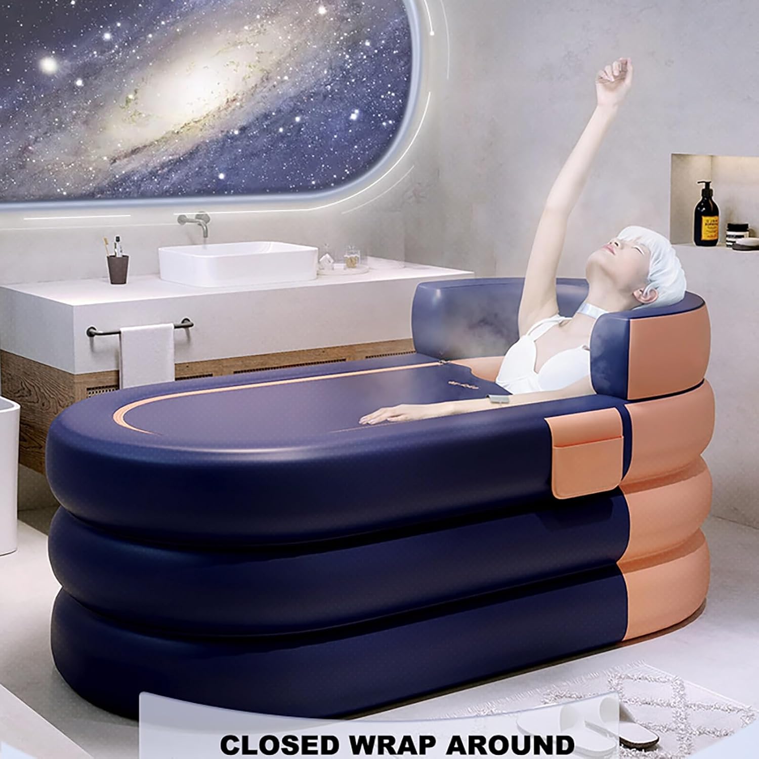 Enhanced thermal insulation is provided by six layers of cotton padding, effectively locking in heat for longer baths. When not in use, the bathtub can be folded for easy storage, making it ideal for small spaces or travel. Efficient drainage is facilitated by a side and bottom system, ensuring quick water removal.
