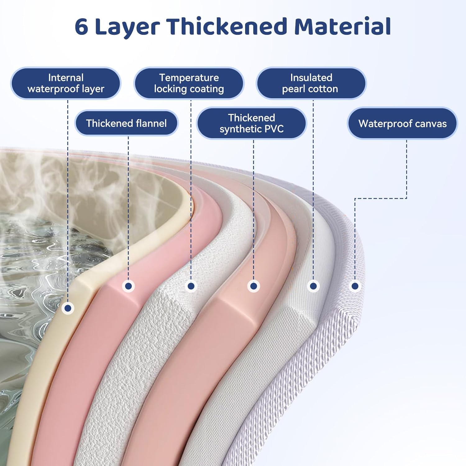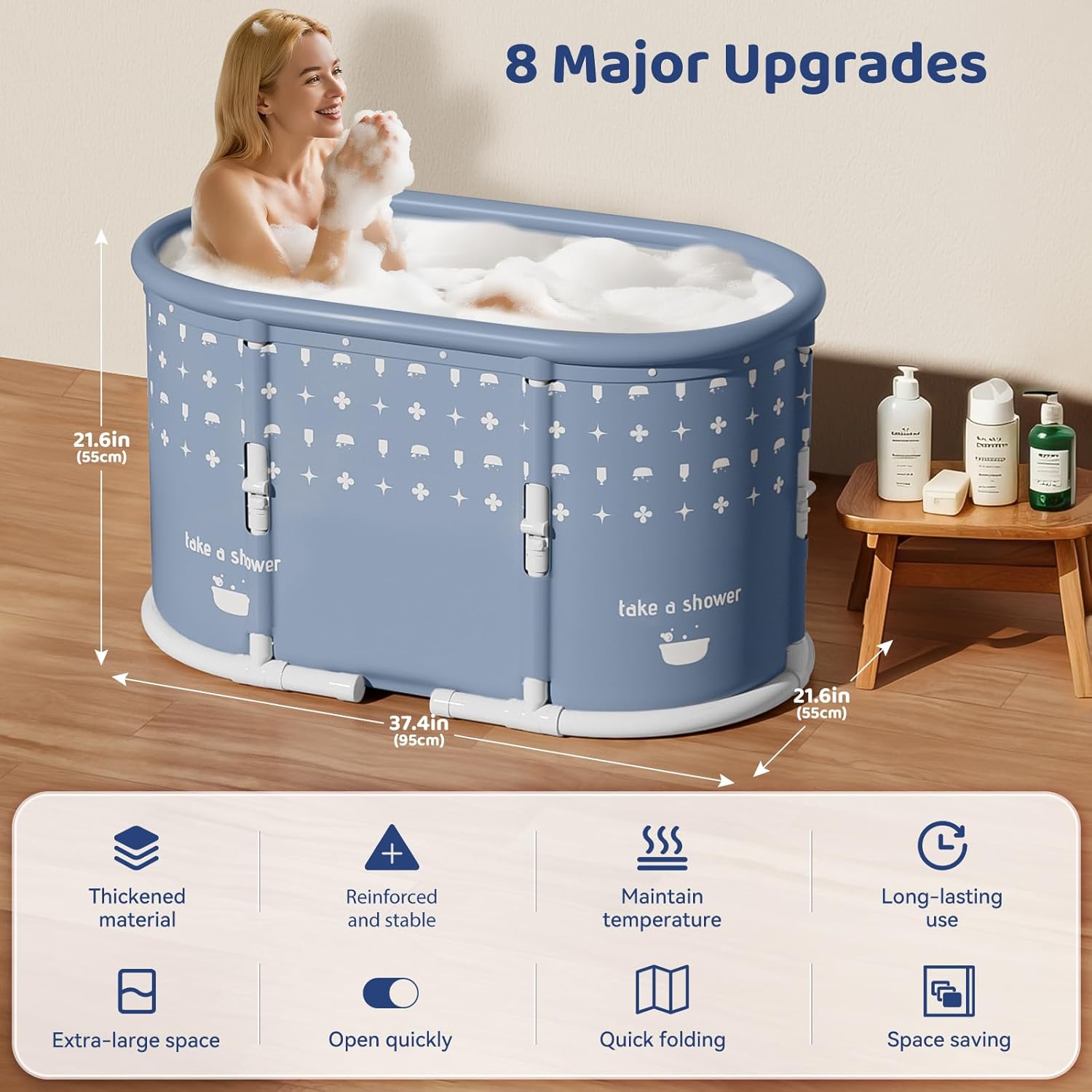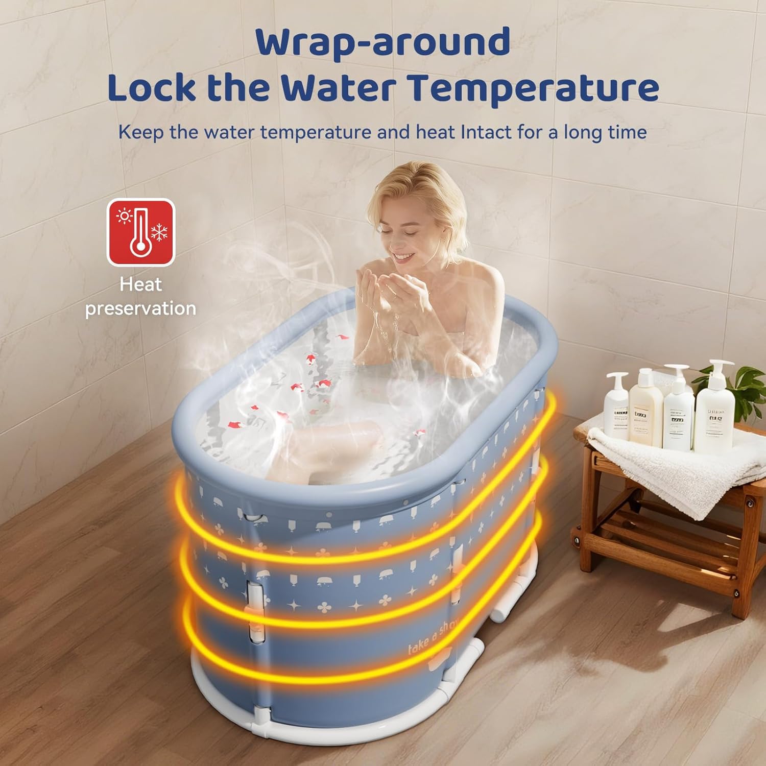 The Portable Bathtub is designed for convenience and comfort, making it ideal for both indoor and outdoor use. Made from 6 layers of thickened material, it features a sturdy pearl cotton bottom and support frames for stability. This freestanding bathtub allows for hot and cold baths, maintaining heat for up to 60 minutes. Its large capacity provides ample space for relaxation, and the no-installation feature means you can set it up in seconds. When not in use, it folds easily for storage in small spaces, making it perfect for homes without a traditional bathtub.