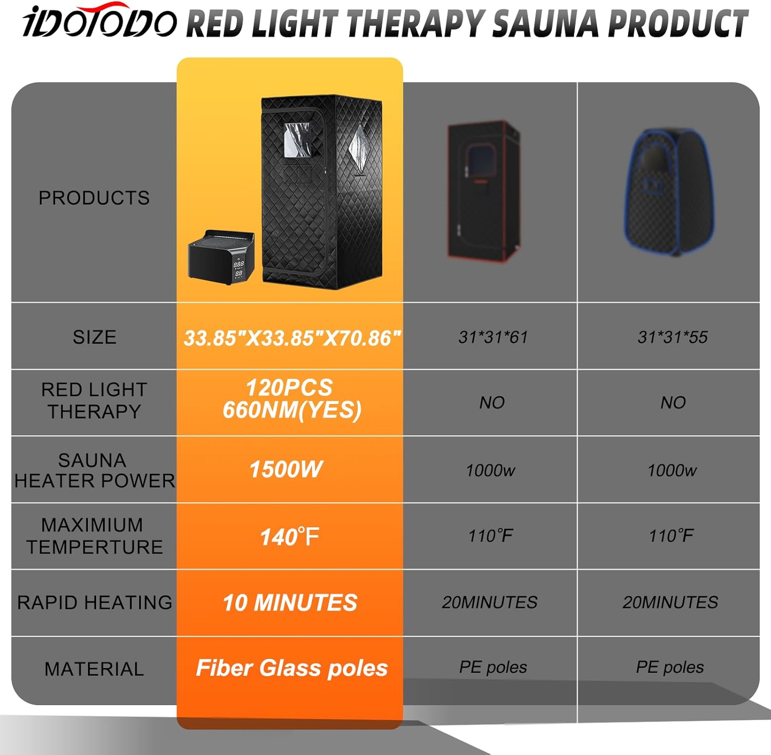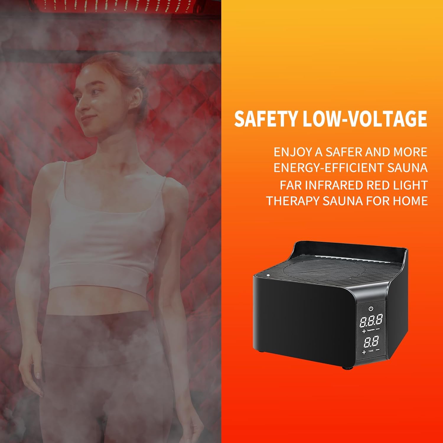 The Portable Personal Far Infrared Sauna Box is designed for home use, featuring an upgraded red light therapy panel with a 660nm wavelength that closely matches the body's own wavelength for better absorption. This sauna offers a full-spectrum heating system that emits light similar to natural sunlight, promoting improved circulation and skin health. Its powerful heating system allows the sauna to reach 72°C in about one minute, providing a quick and efficient experience. The intelligent cycle ensures that the temperature remains stable, reactivating within 45 seconds if it drops.