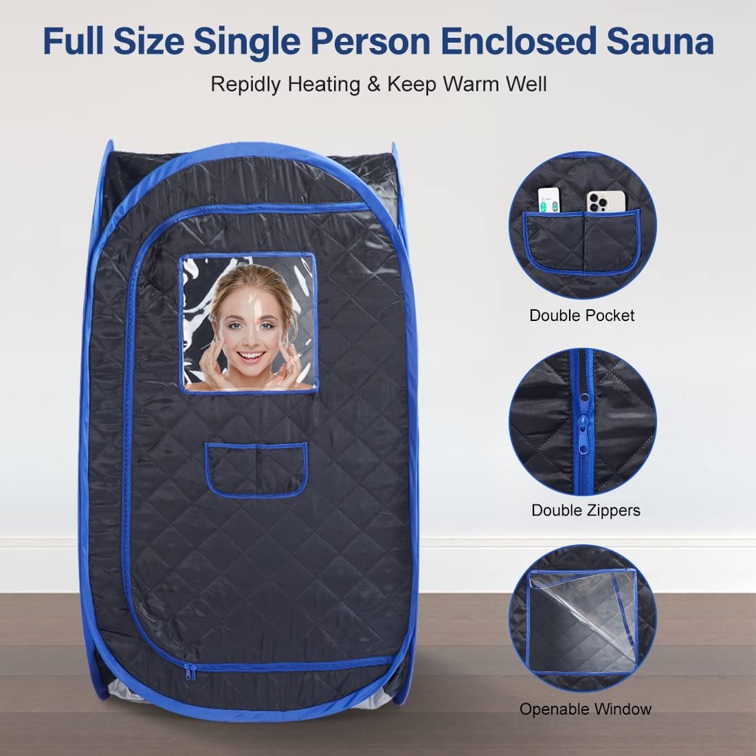 The Portable Sauna Tent is designed for one person and offers a convenient way to enjoy a full body spa experience at home. Its foldable design allows for quick setup and storage, making it ideal for those with limited space. The double-headed zipper provides easy access from both inside and outside, enhancing user convenience. This sauna tent is made from waterproof materials, ensuring durability and ease of cleaning. It also features humanized pockets for storing your mobile phone and remote control, allowing you to enjoy entertainment while you relax.