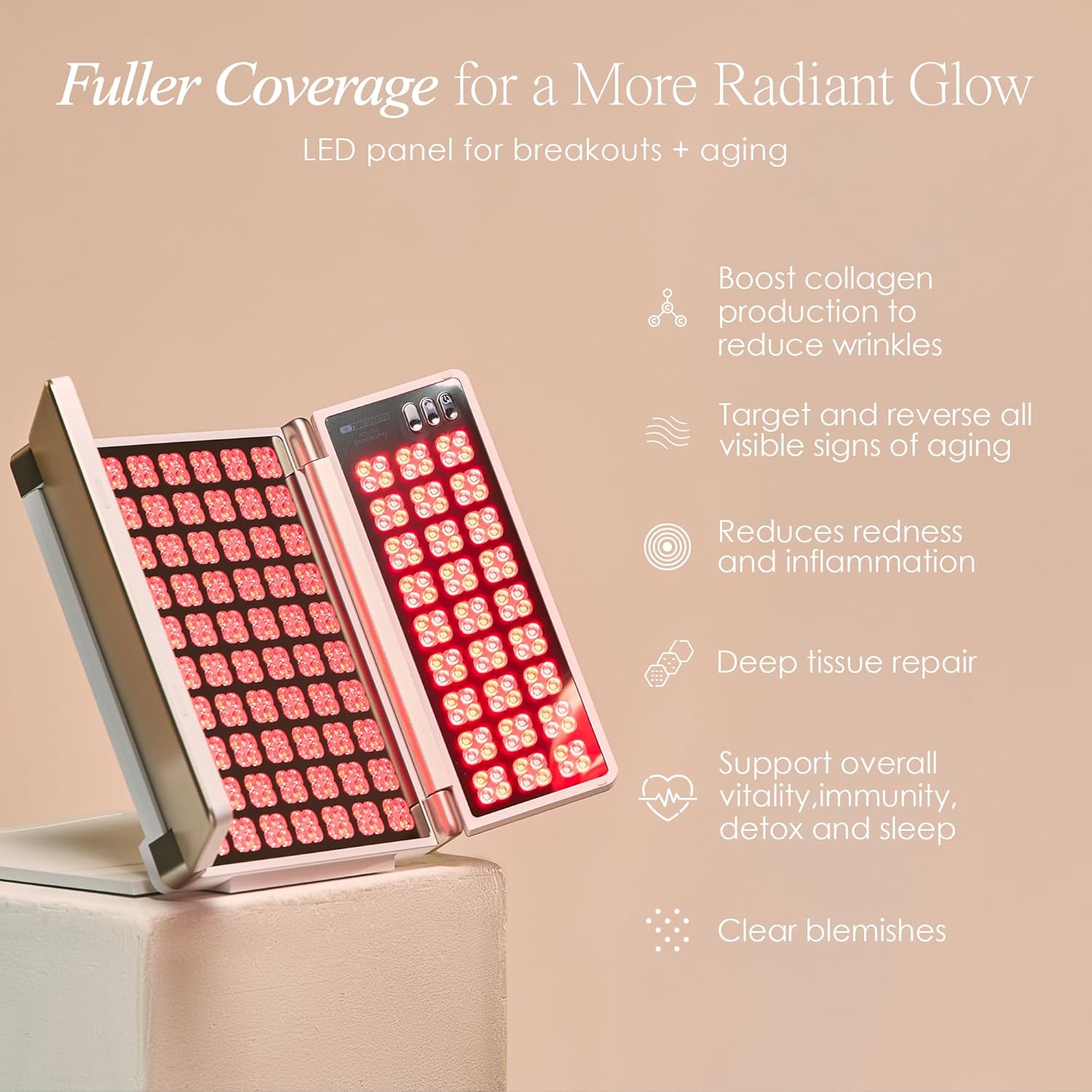 Three adjustable panels adapt to your facial structure for even light therapy.