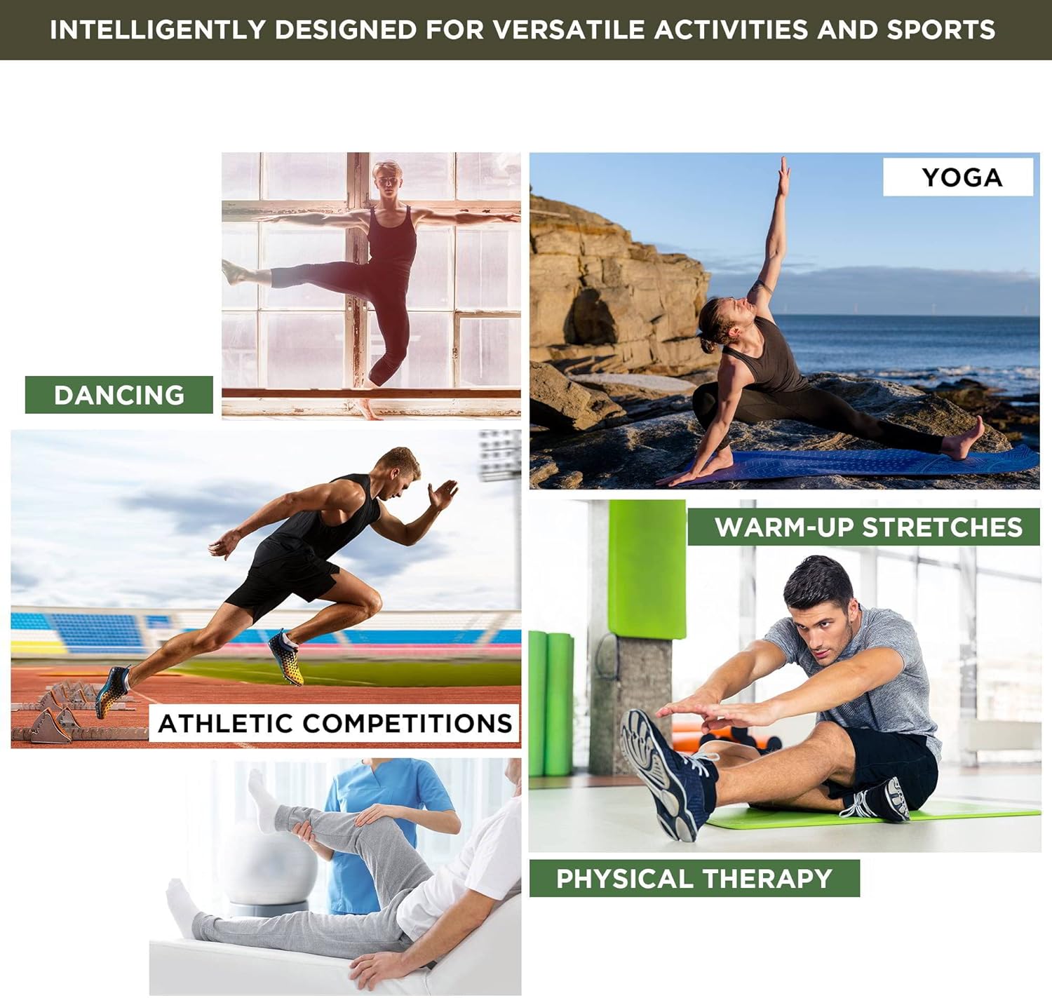 - Supports flexibility and strength training