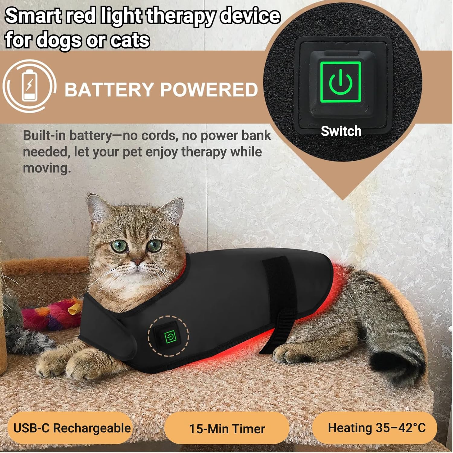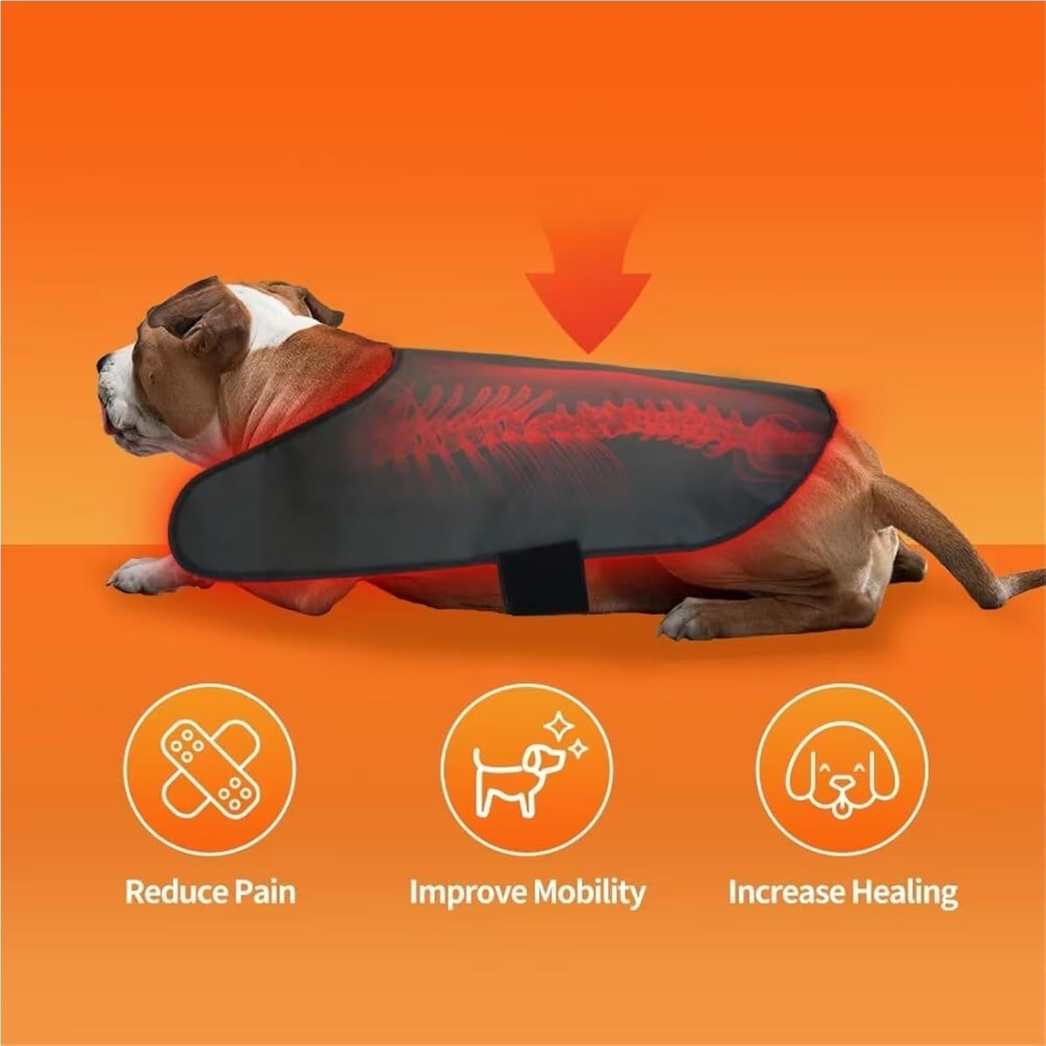Utilizes red light therapy to help alleviate discomfort in pets.