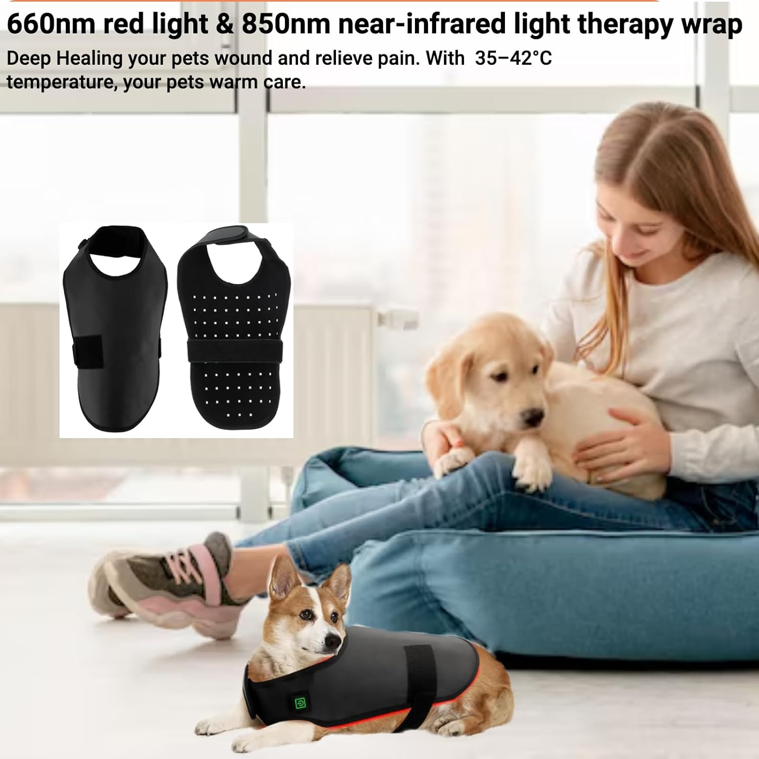 The Red Light Therapy Belt for Pets is designed to provide relief for various ailments in dogs, cats, and even horses. This adjustable back brace utilizes advanced LED technology with wavelengths of 660 and 850nm to target pain effectively. The device is user-friendly, featuring a touch panel for easy operation.