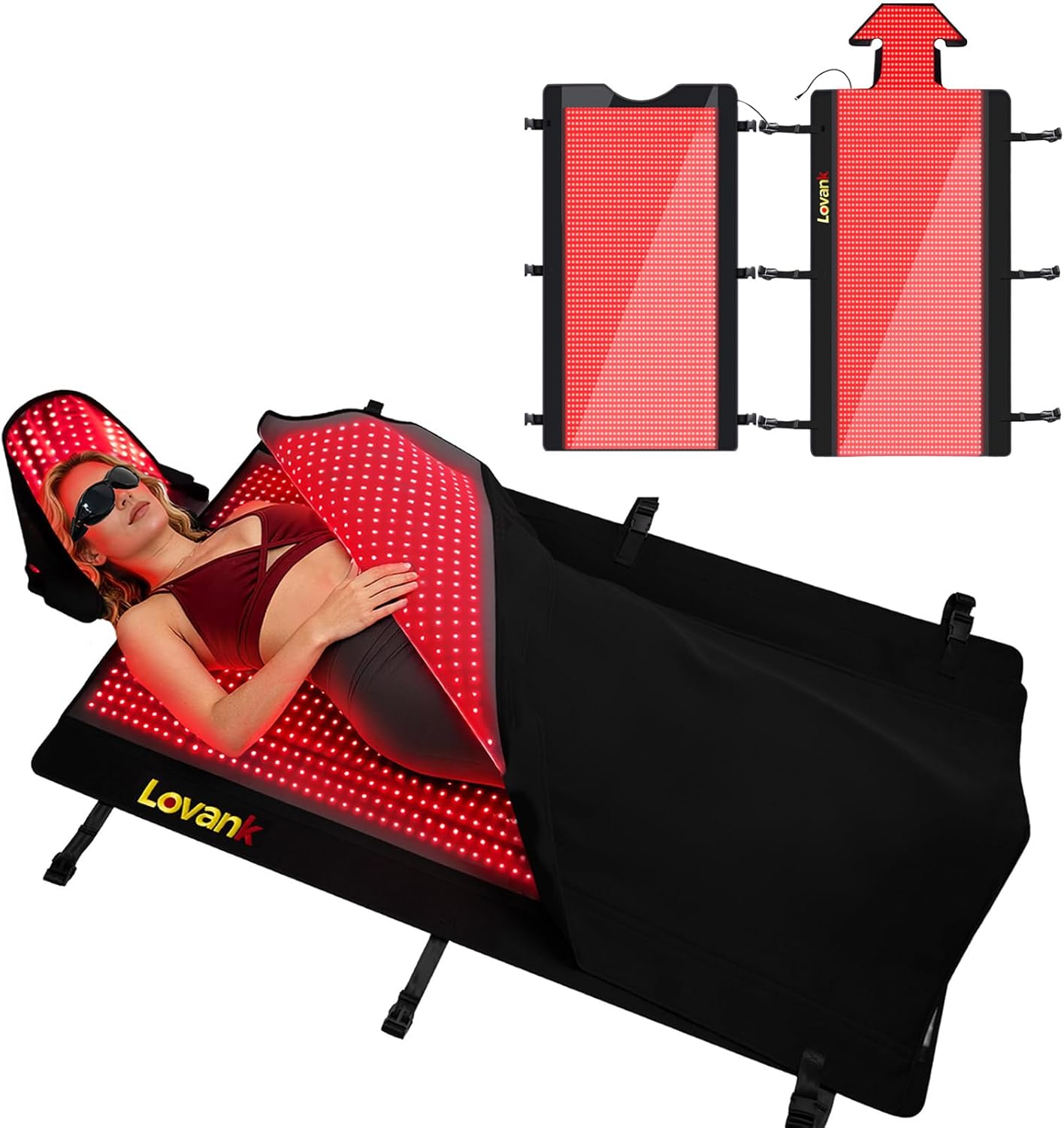 The Red Light Therapy Mat is designed for full-body use, measuring 81"x33" and equipped with 2,710 LEDs that emit both 660nm and 850nm wavelengths. This mat is intended for home use, providing a convenient way to incorporate red light therapy into your wellness routine.