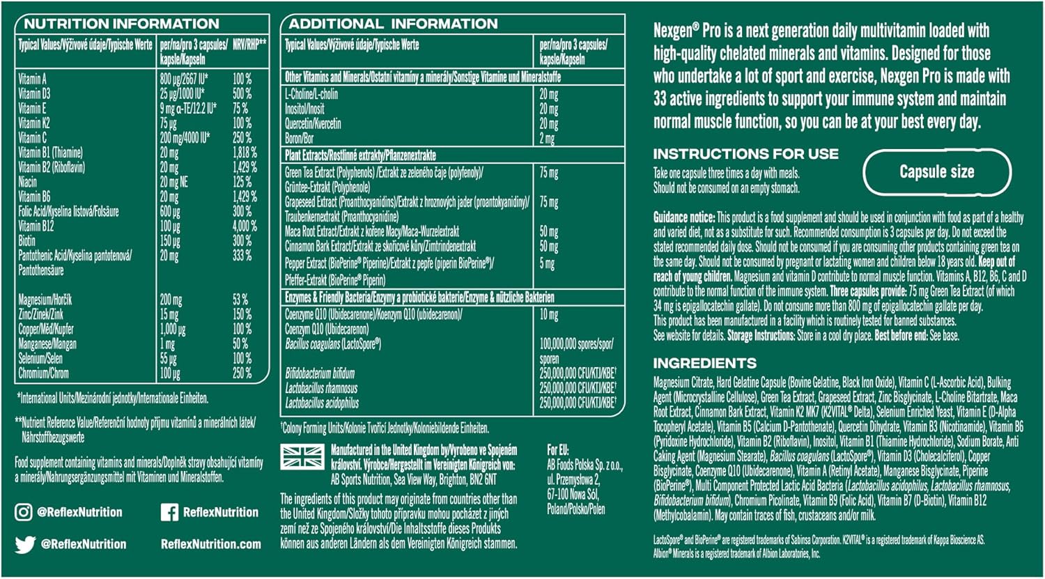 Reflex Nutrition Nexgen® Pro Multivitamins and Minerals for Immune Support (90 Caps) – For Active Lifestyles – Multi Mineral and Vitamins for Immune System – Vitamin D Magnesium Vitamin C Zinc