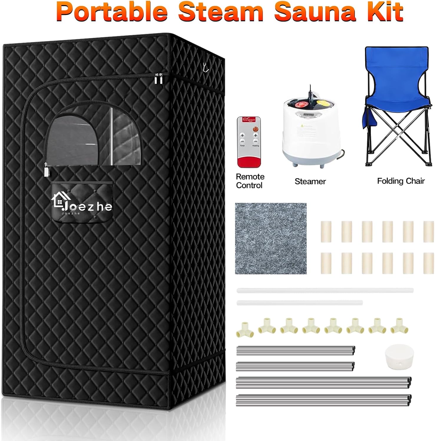 The Portable Steam Sauna Box is a compact solution for enjoying a steam sauna experience at home. Designed for easy assembly, it features a sturdy rectangular frame covered with durable materials like Oxford Cloth and a waterproof coating. The sauna measures 39.7 inches in length, 68.5 inches in height, and 30.3 inches in width, making it suitable for various spaces.