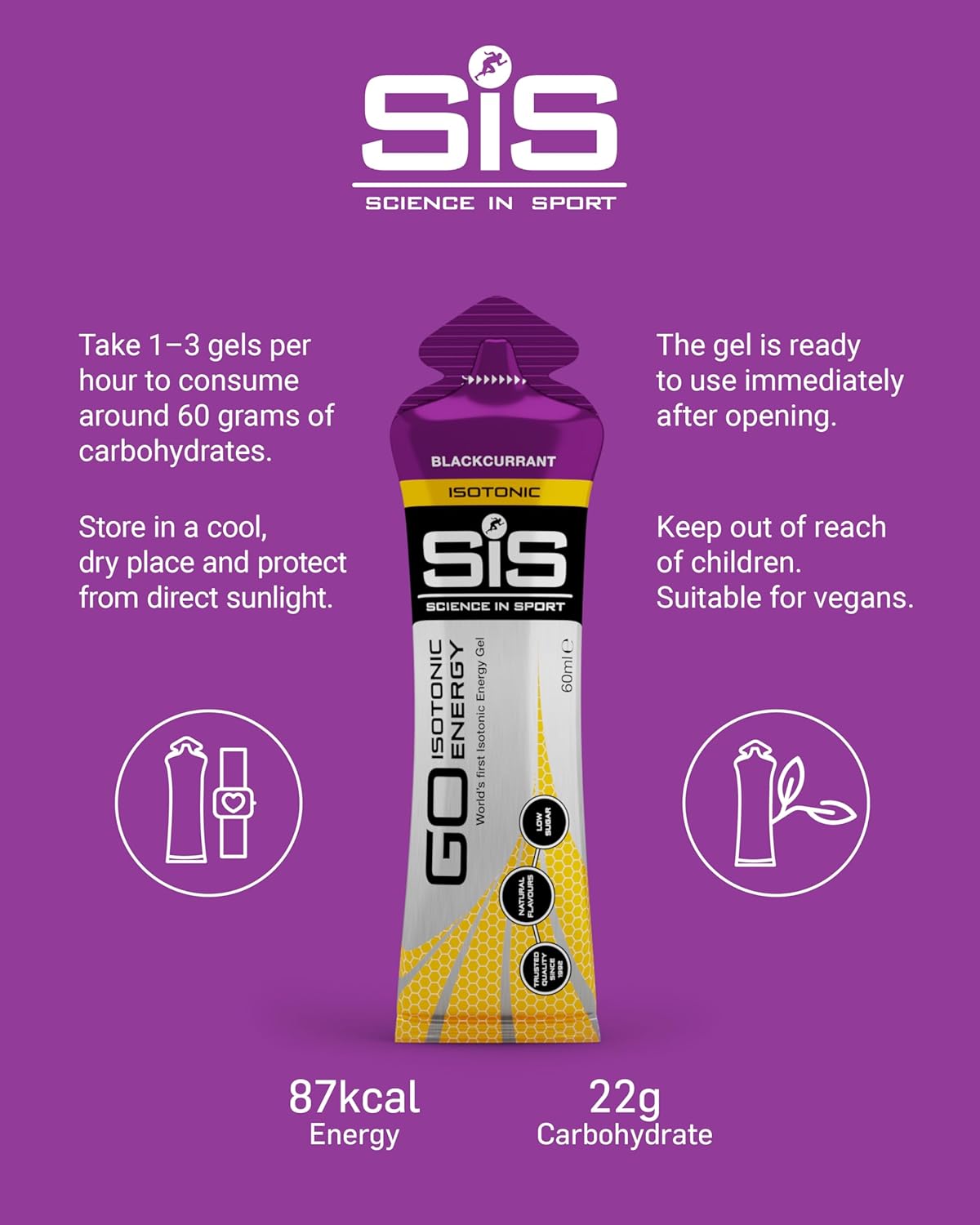 Each SiS GO Isotonic Gel contains 22 grams of carbohydrates.