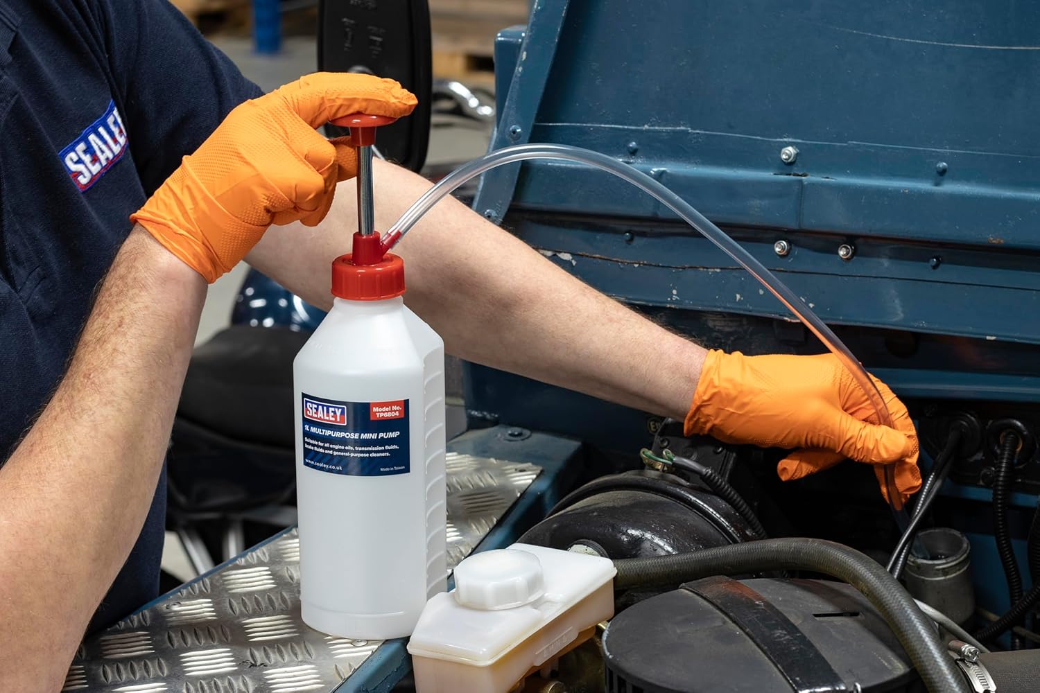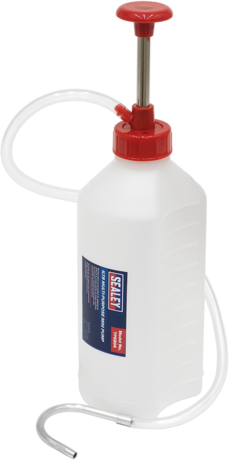The Sealey Tp6804 Multi-Purpose Mini Pump is an essential tool for anyone working on motor vehicles, lawnmowers, or chainsaws. With a capacity of 1 litre, it is designed to help you easily top up fluids in hard-to-reach areas. This versatile pump is compatible with a variety of fluids, including engine oils, transmission fluids, and brake fluids. Its compact size makes it ideal for use in both workshops and at home.