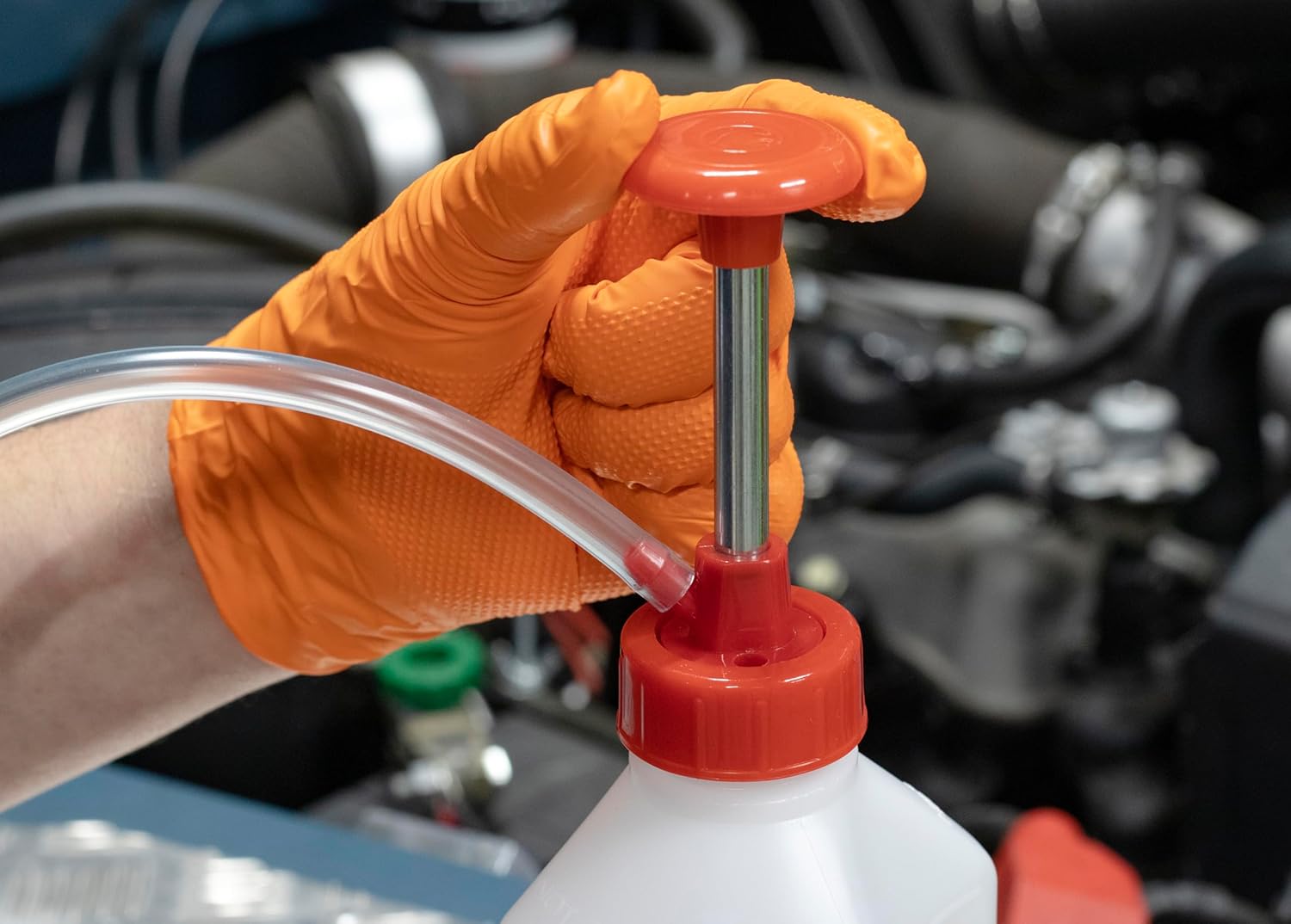 This pump is suitable for all engine oils, transmission fluids, brake fluids, and general purpose cleaners.